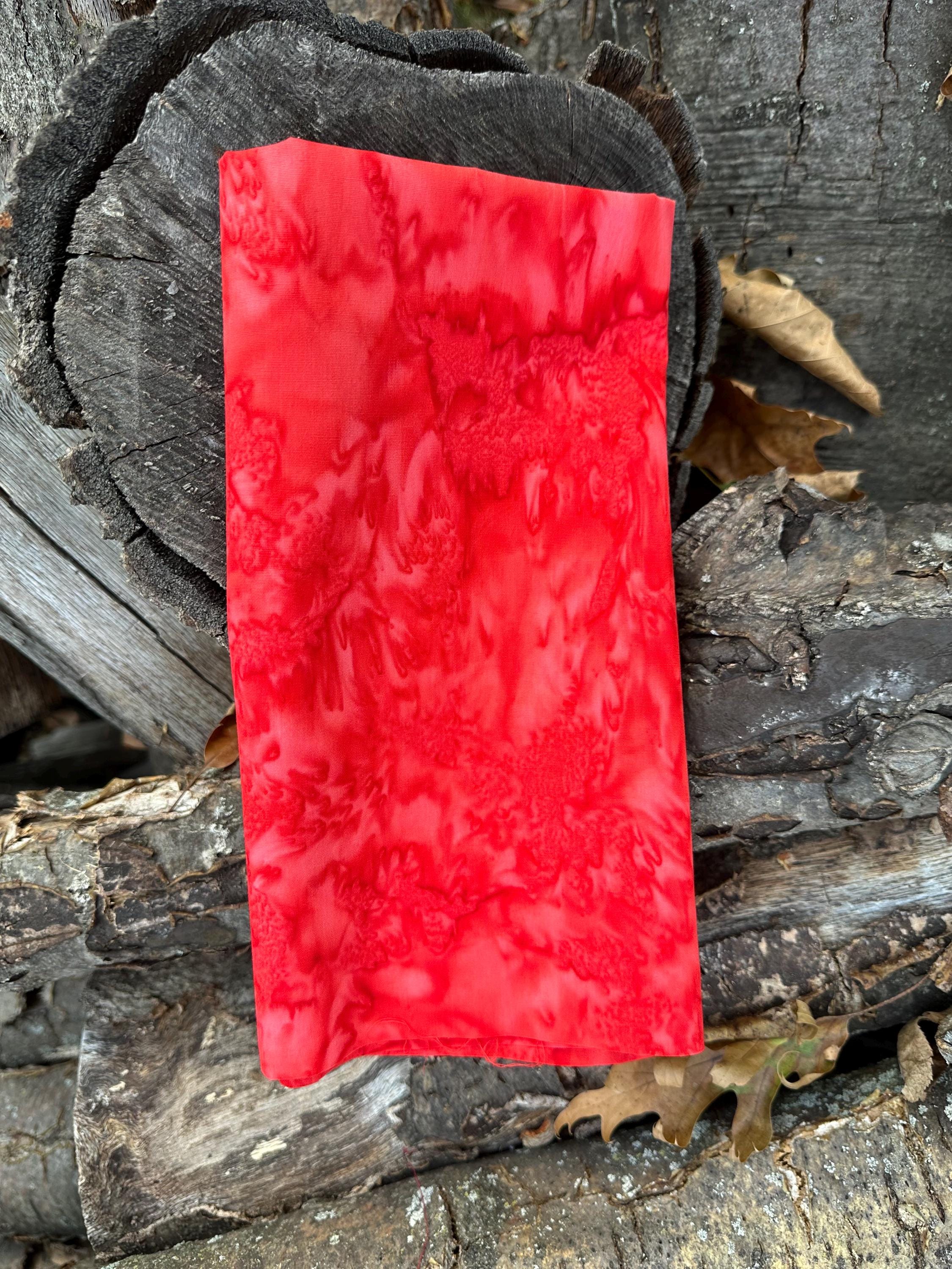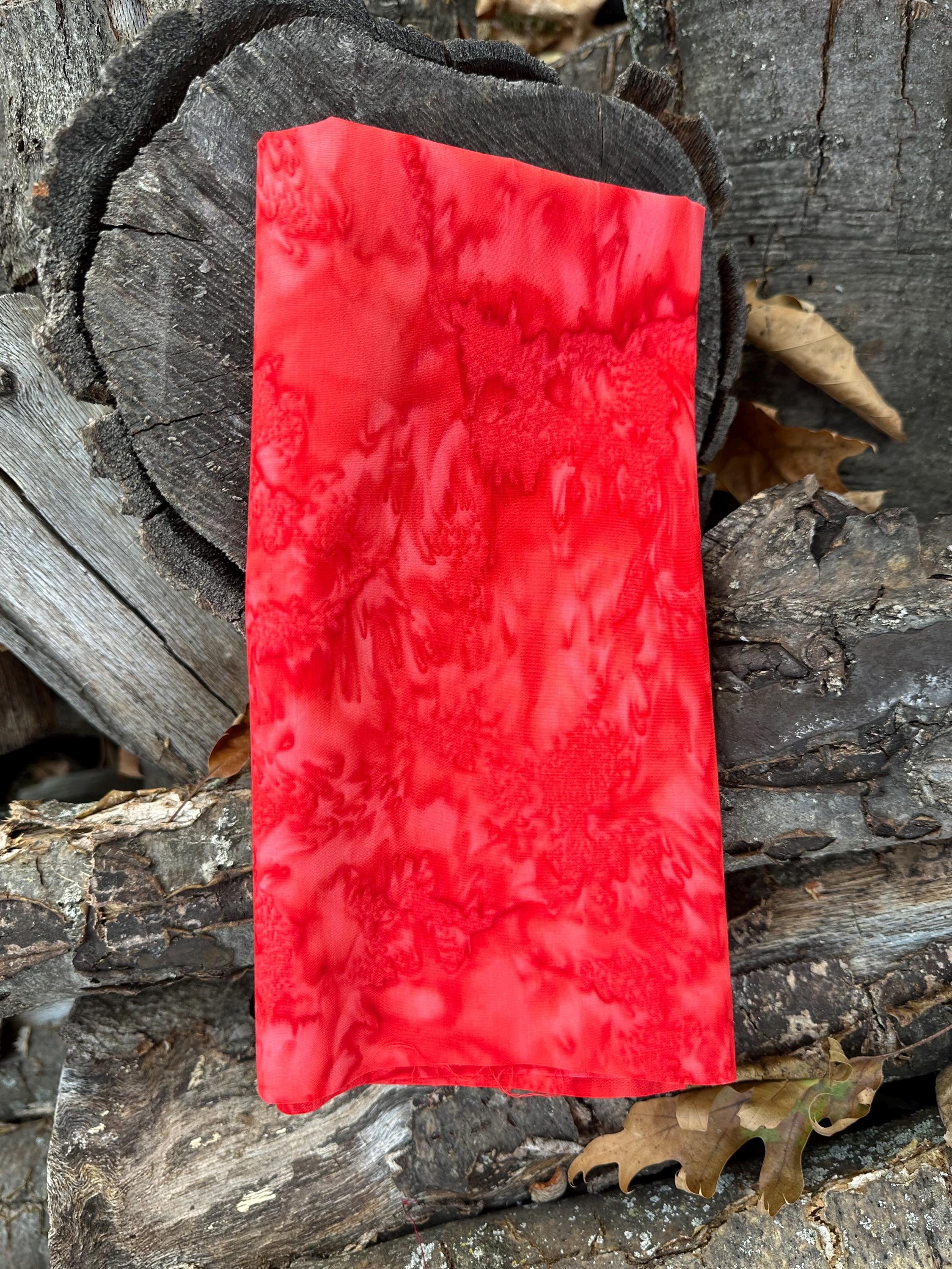 Colorway a pretty Bright Red. Hand dyed and stamped in Indonesia.