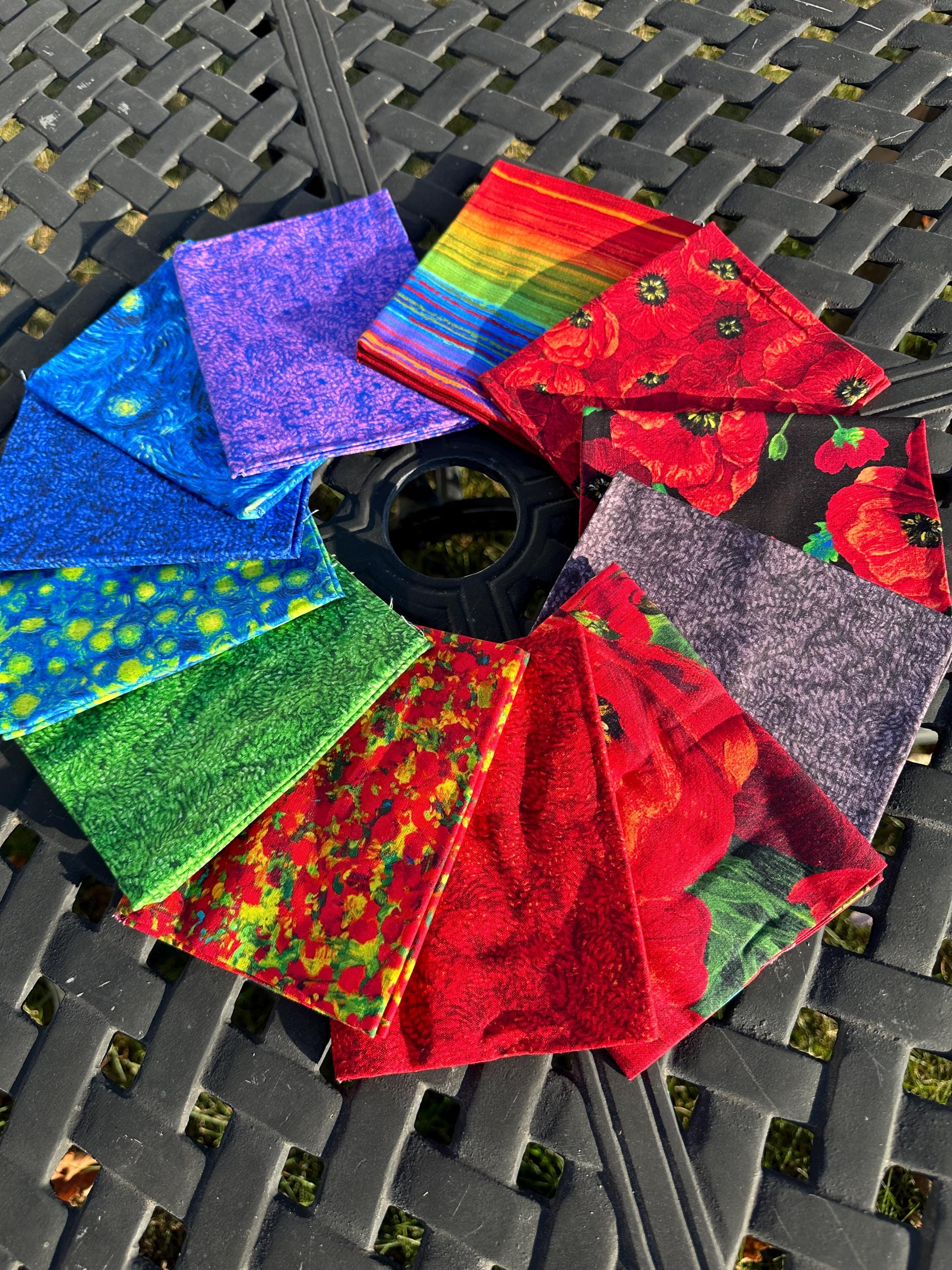 12 individual fat quarters, 100% cotton fabric.
