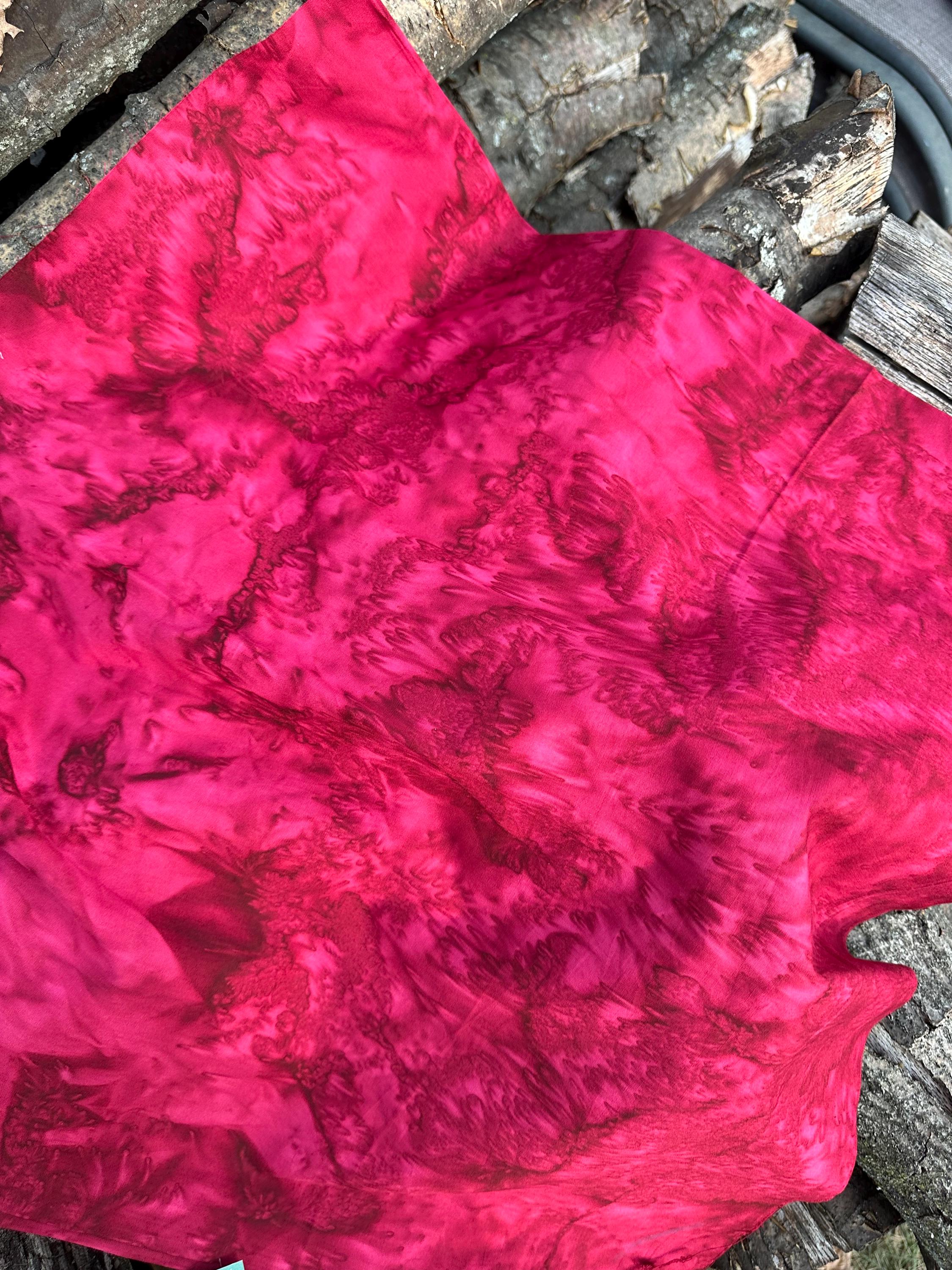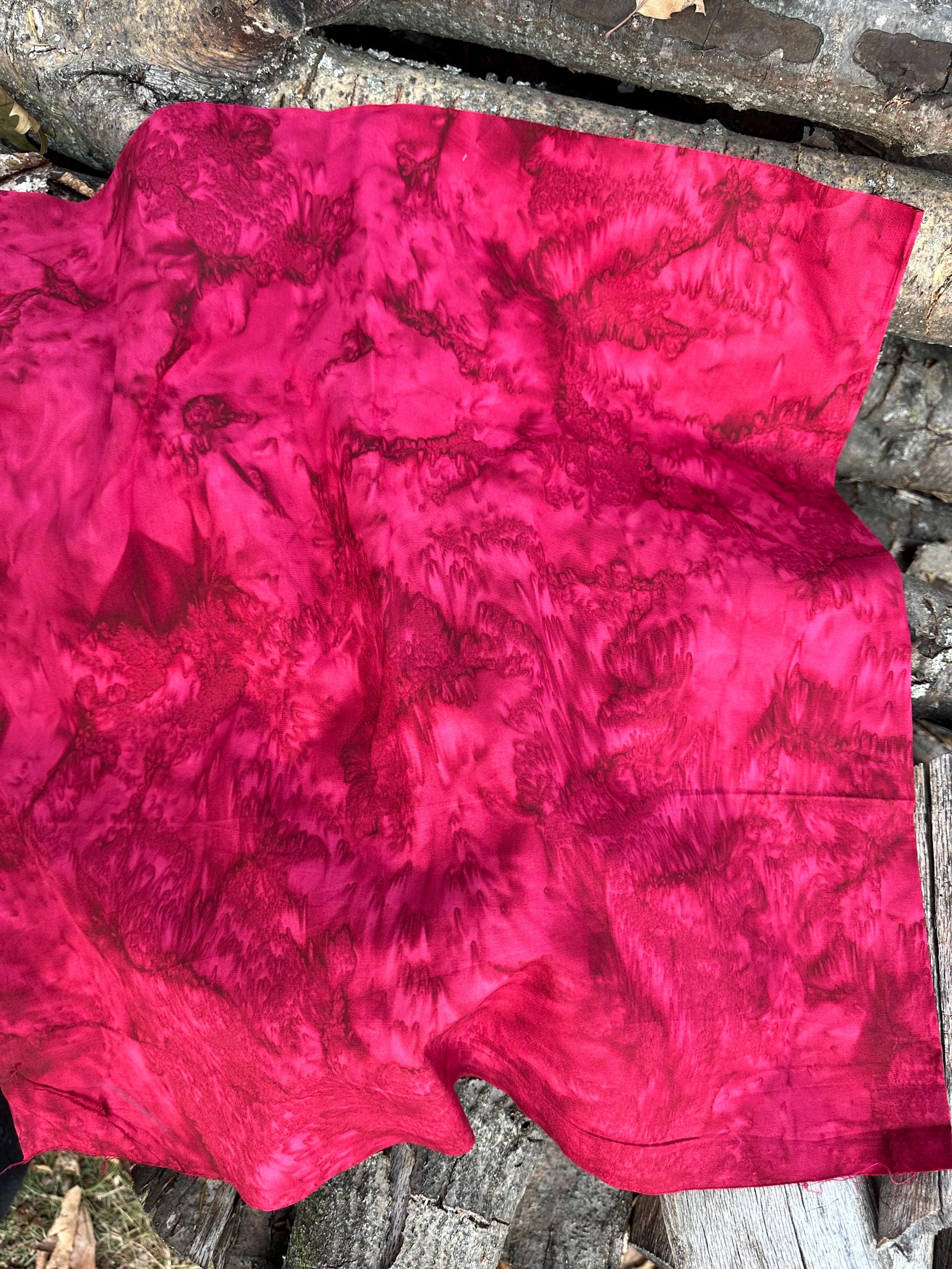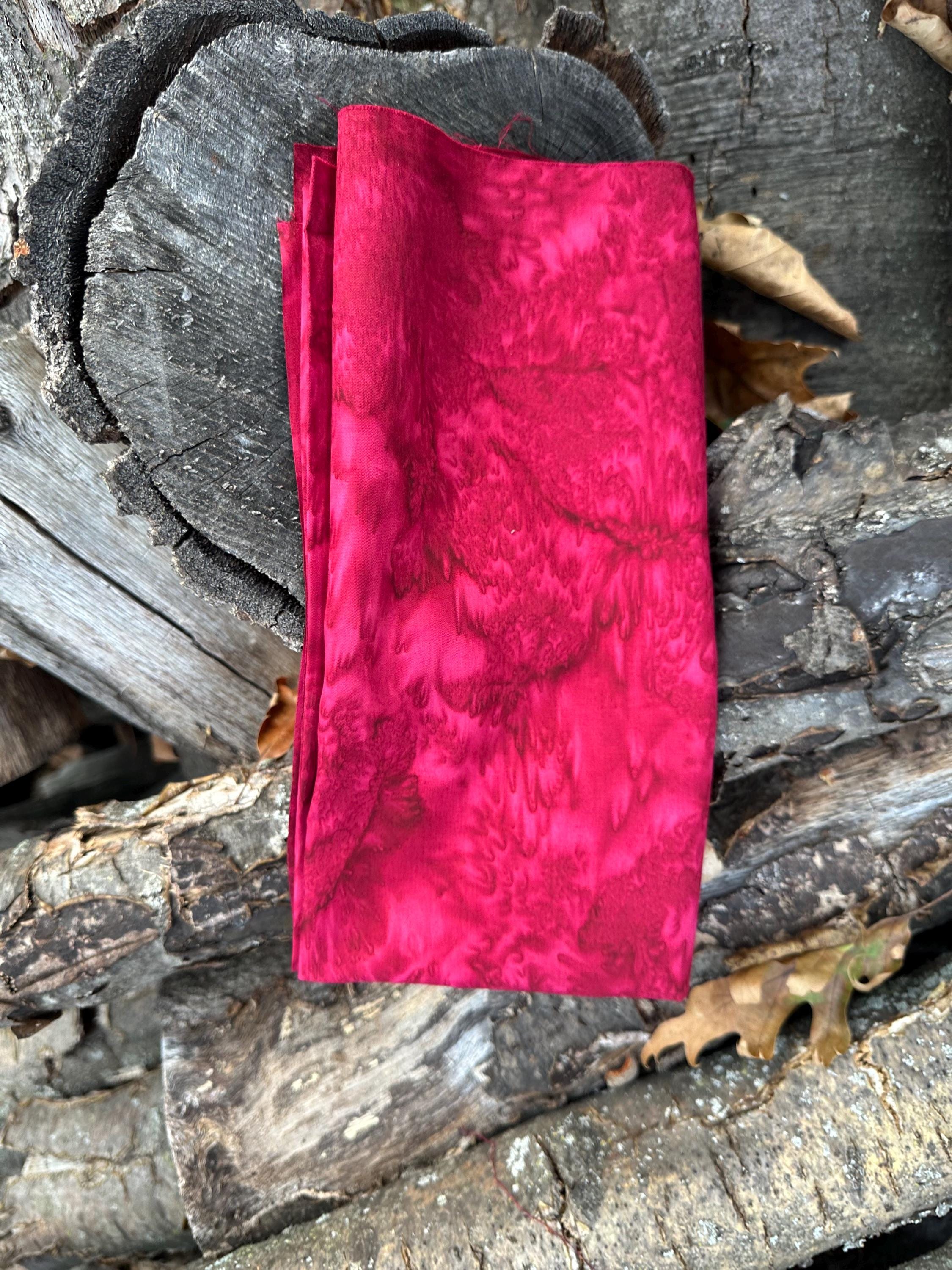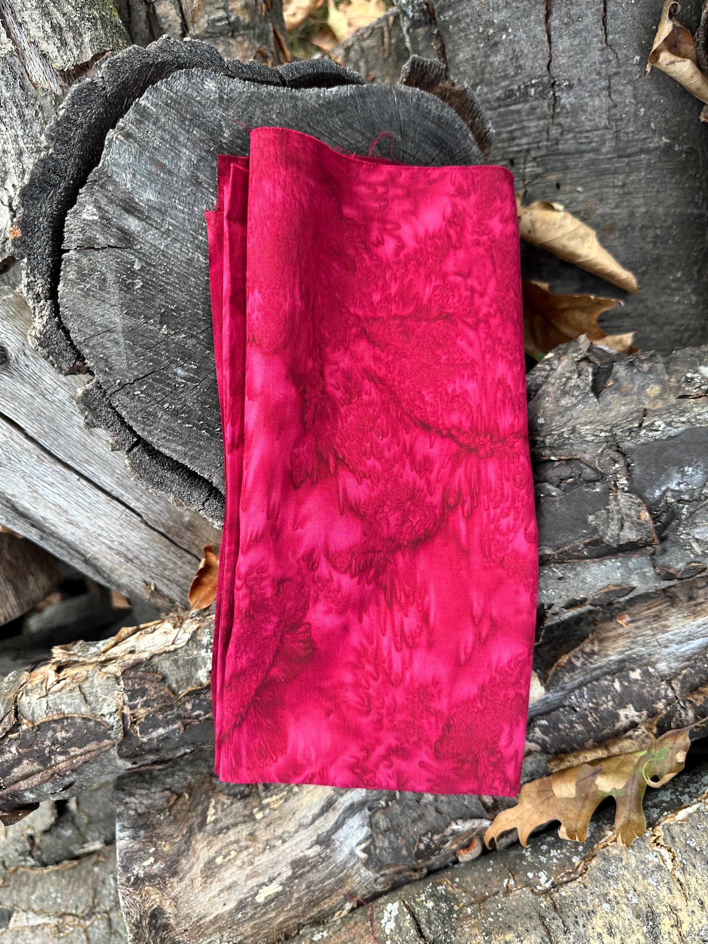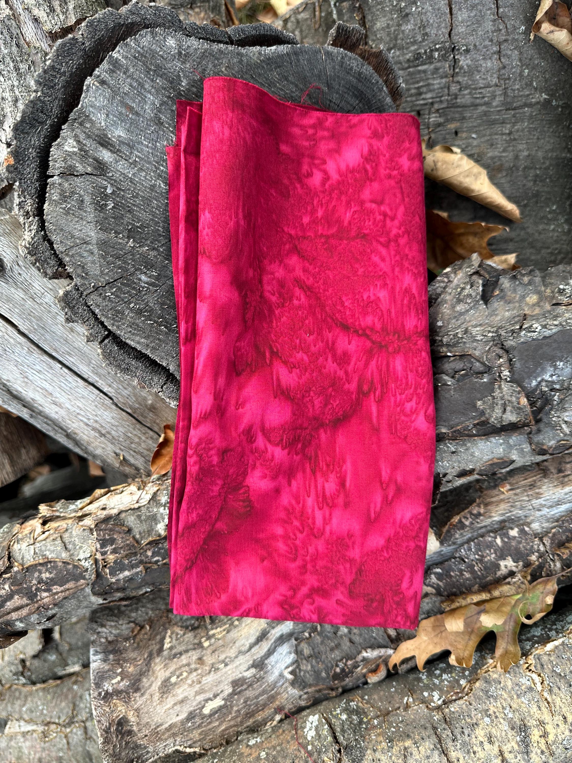 Ruby, Deep Red 100% Cotton. 44/45” wide. Mottled style. Hand-dyed in Bali.