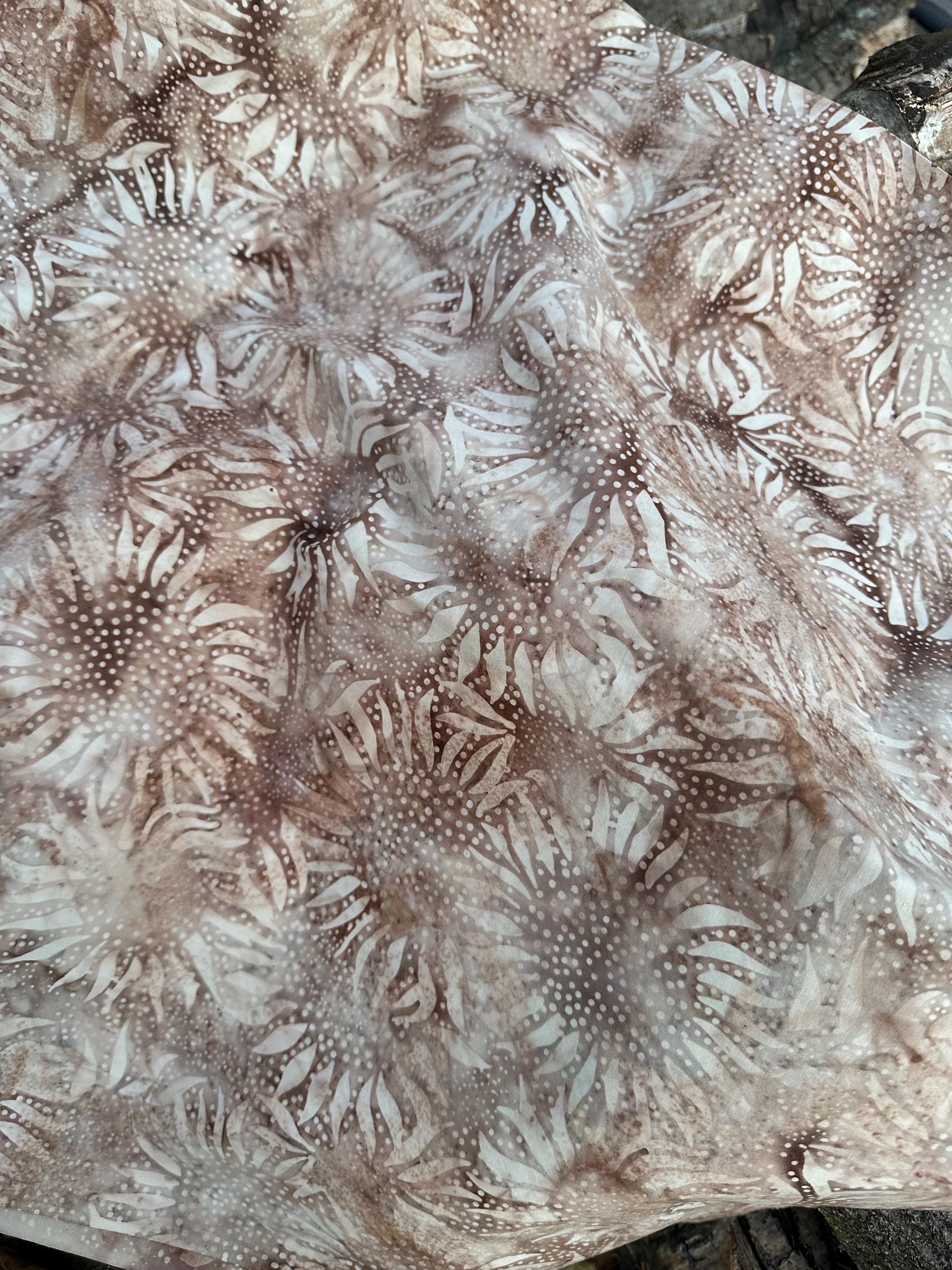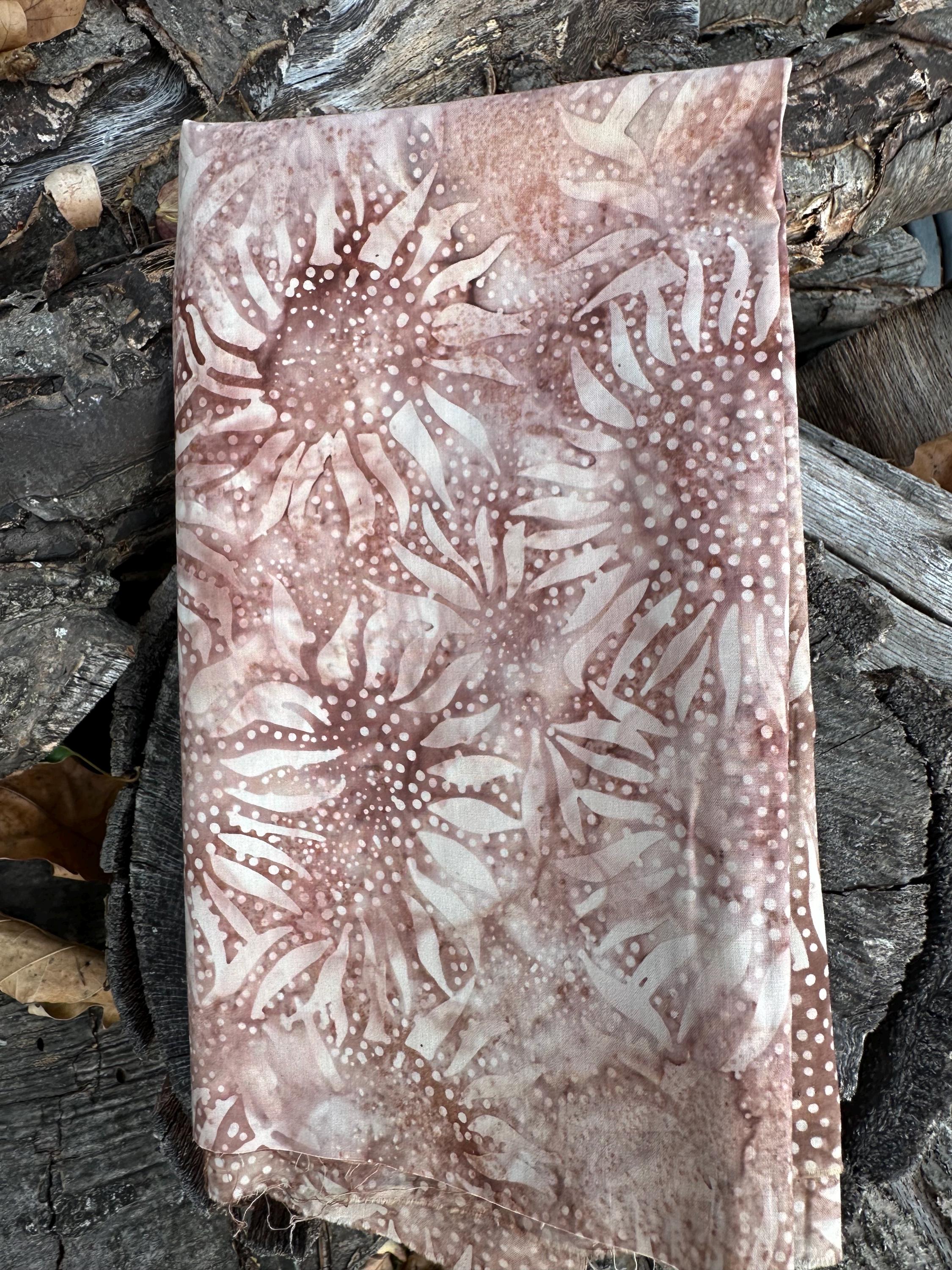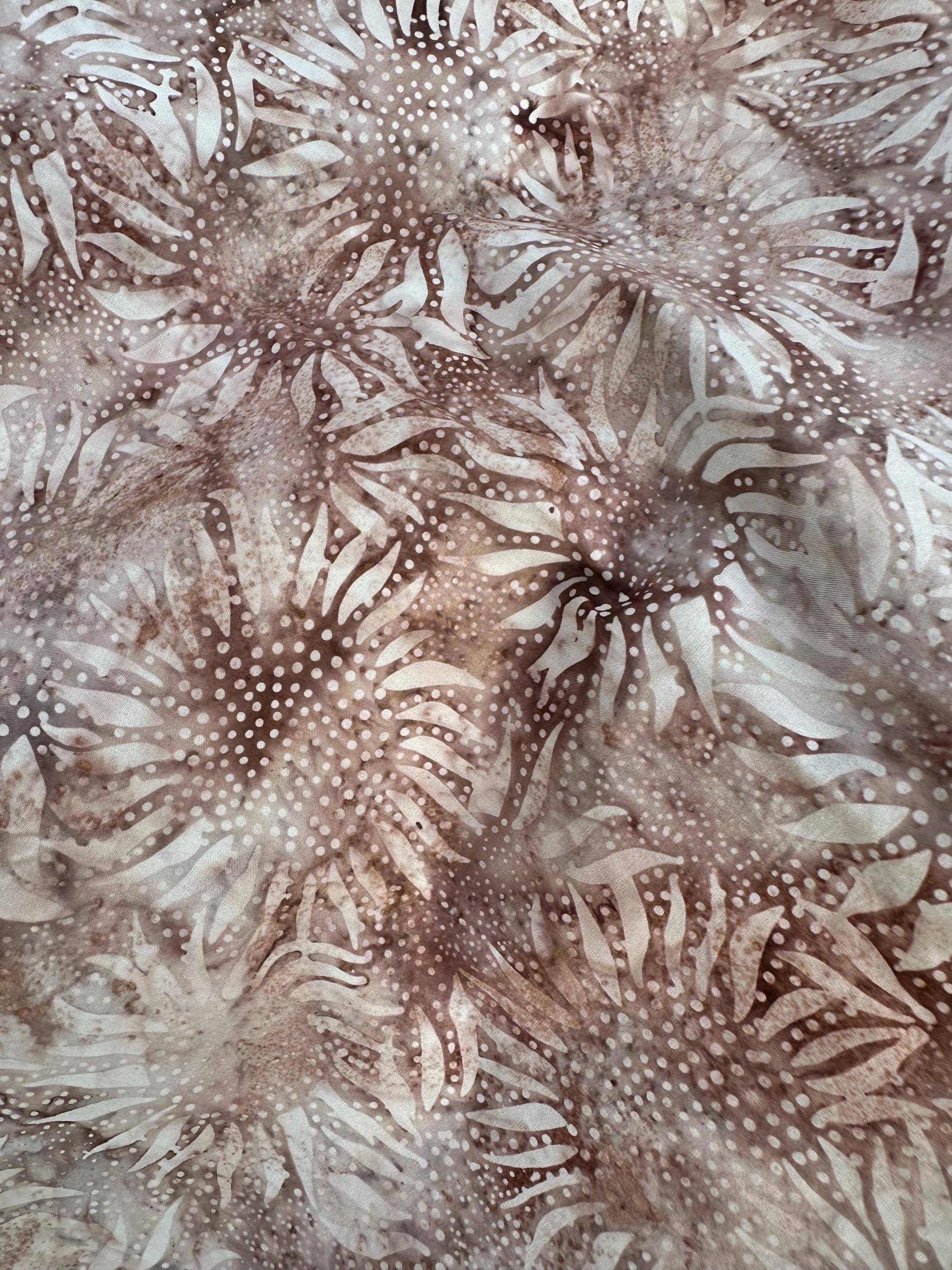 Sunflower Batik in a deep and light Browns and Beige. Hand dyed and stamped in Indonesia.