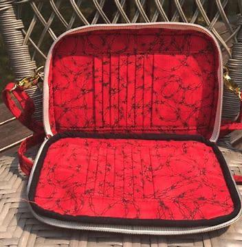 Two Completely Separate & Zippered Storage Areas– including a drop-down area with sixteen slots for credit/loyalty cards