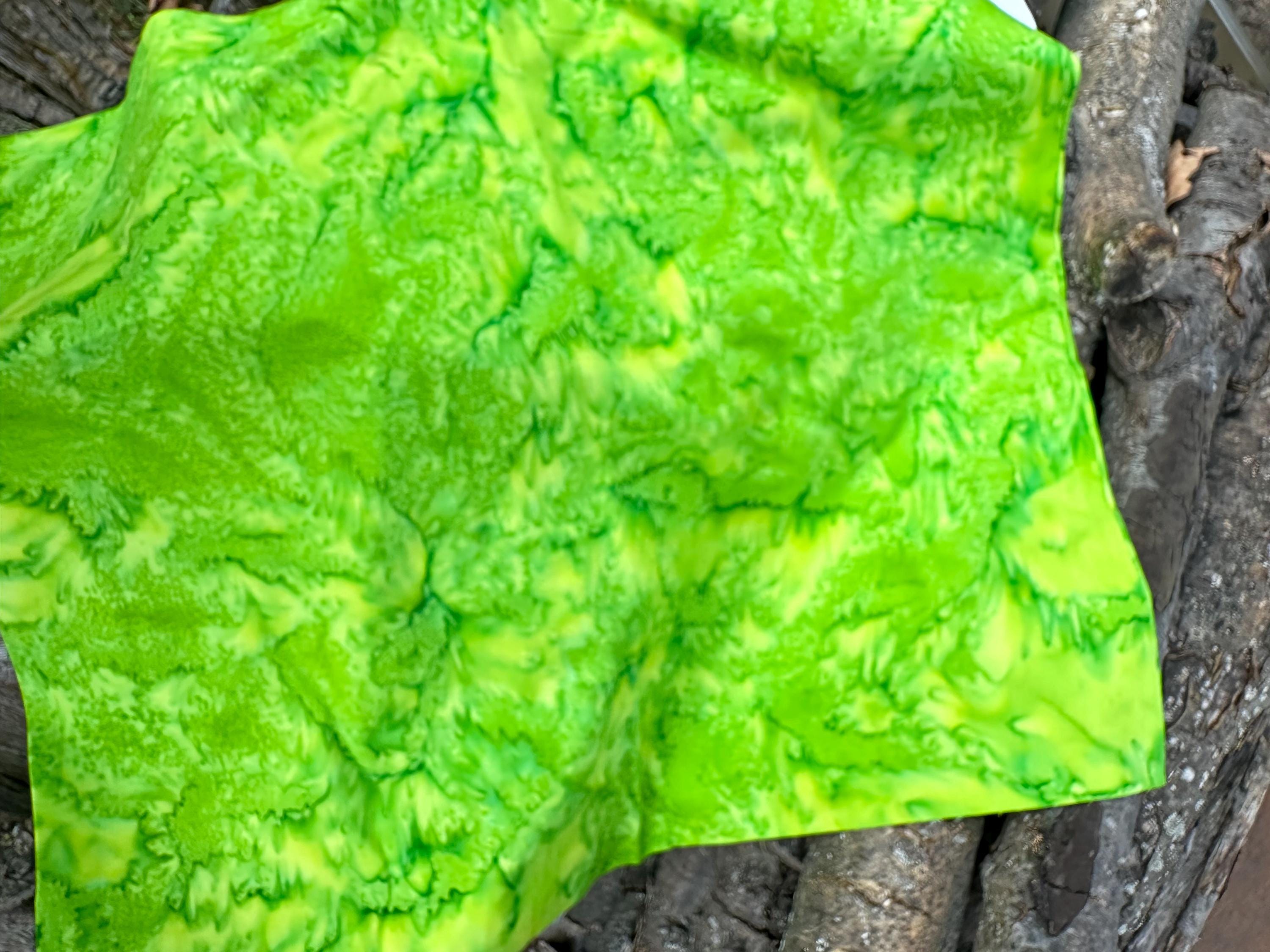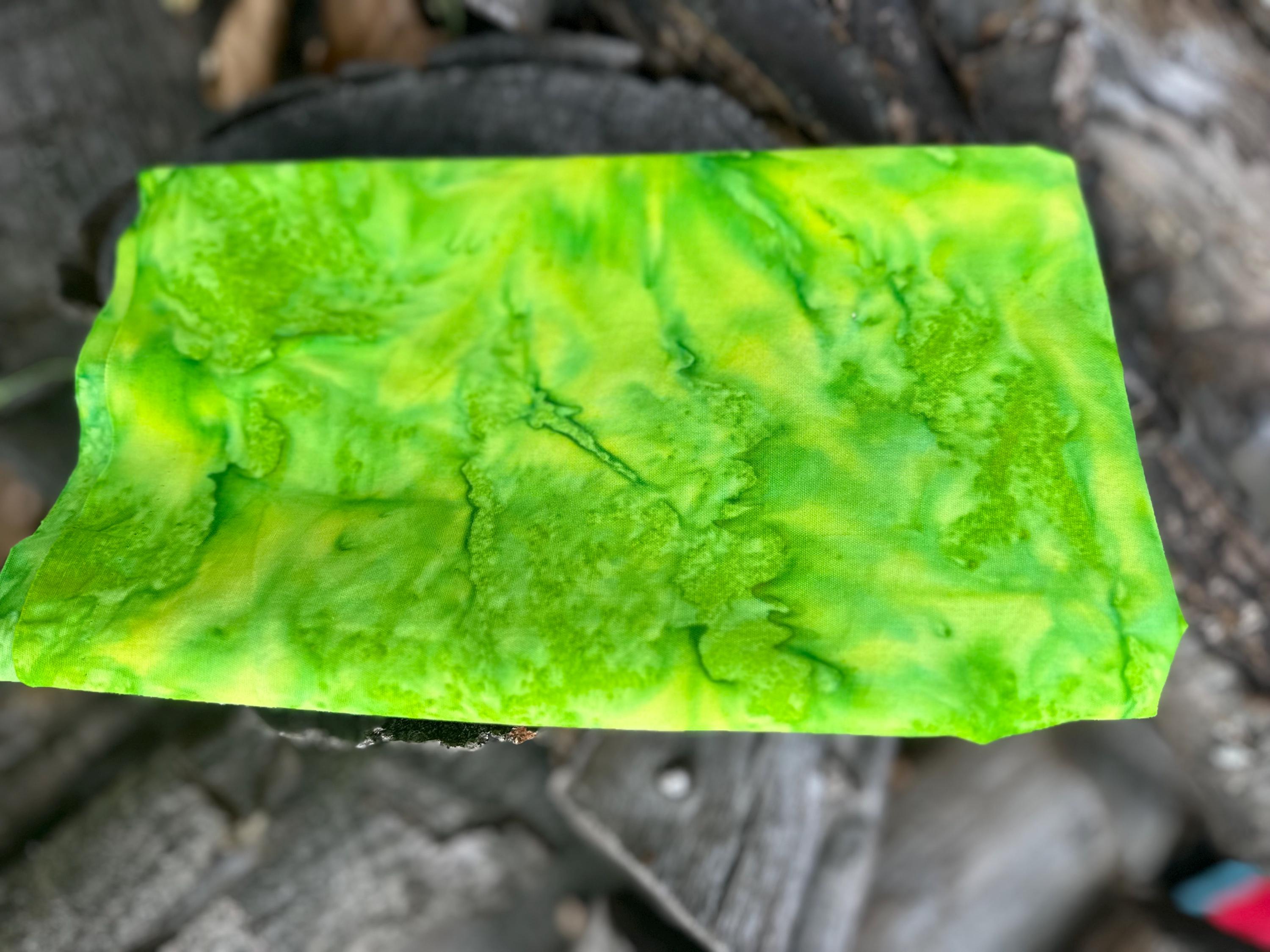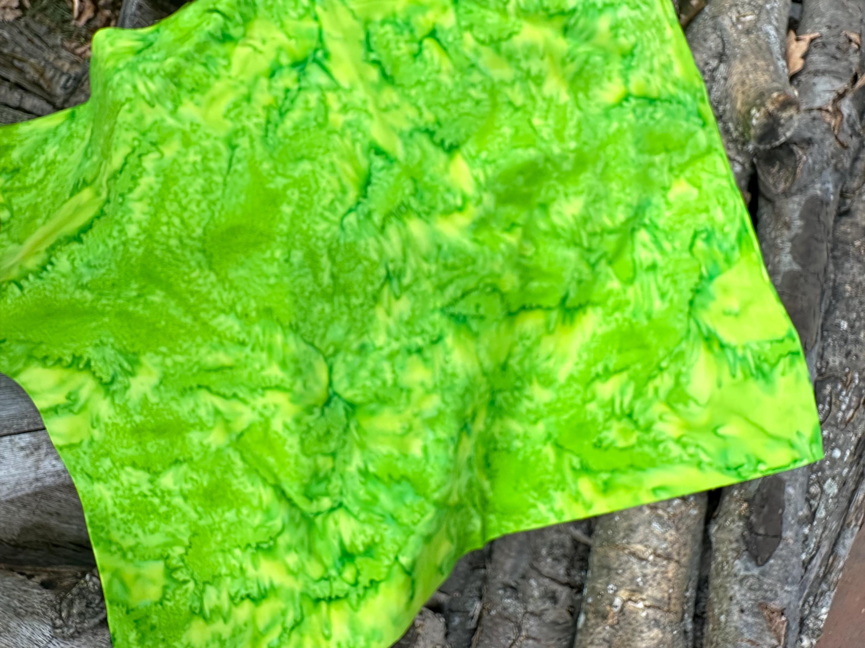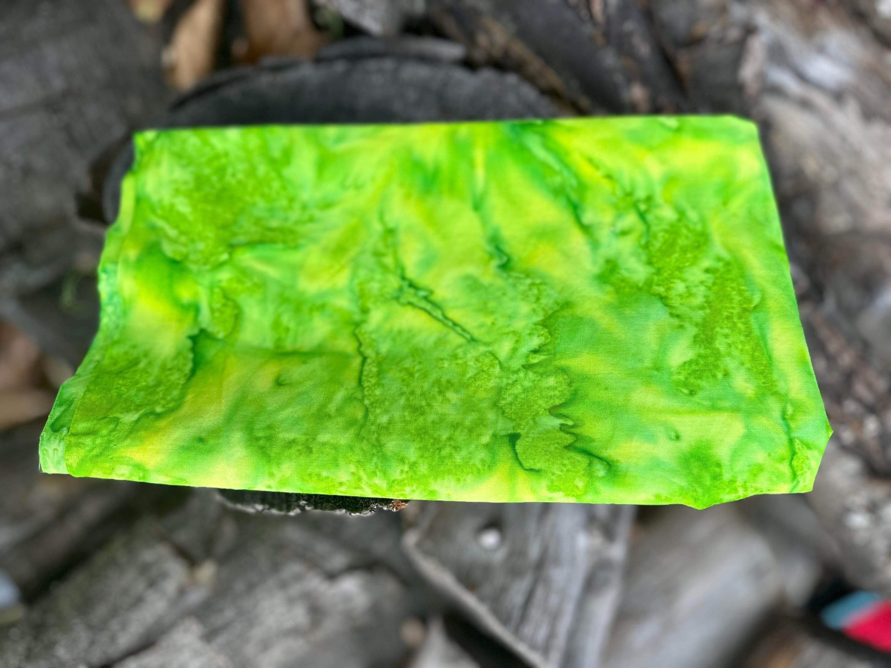 Gecko, Lime Green 100% Cotton. 44/45” wide. Mottled style. Hand-dyed in Bali.
