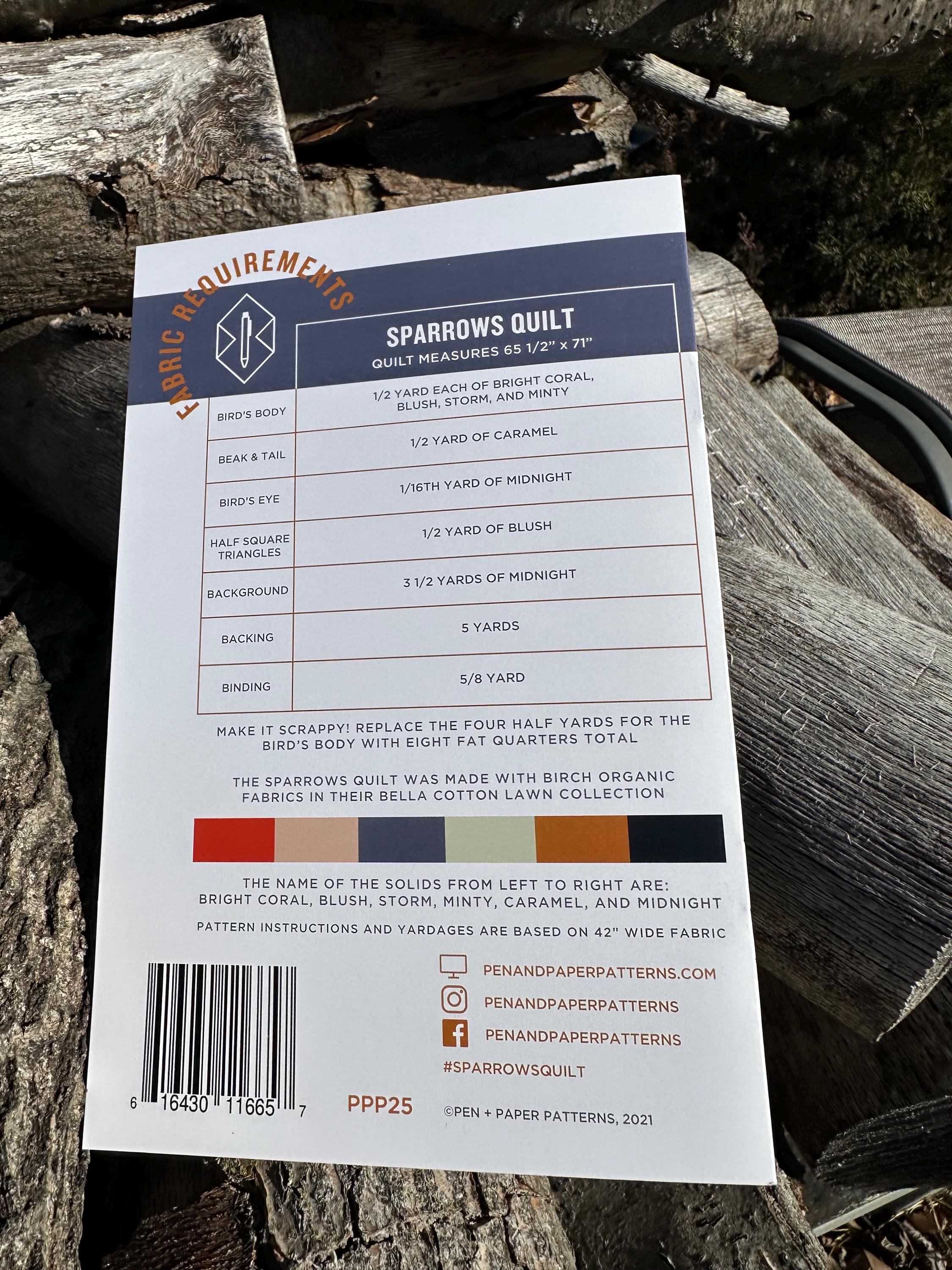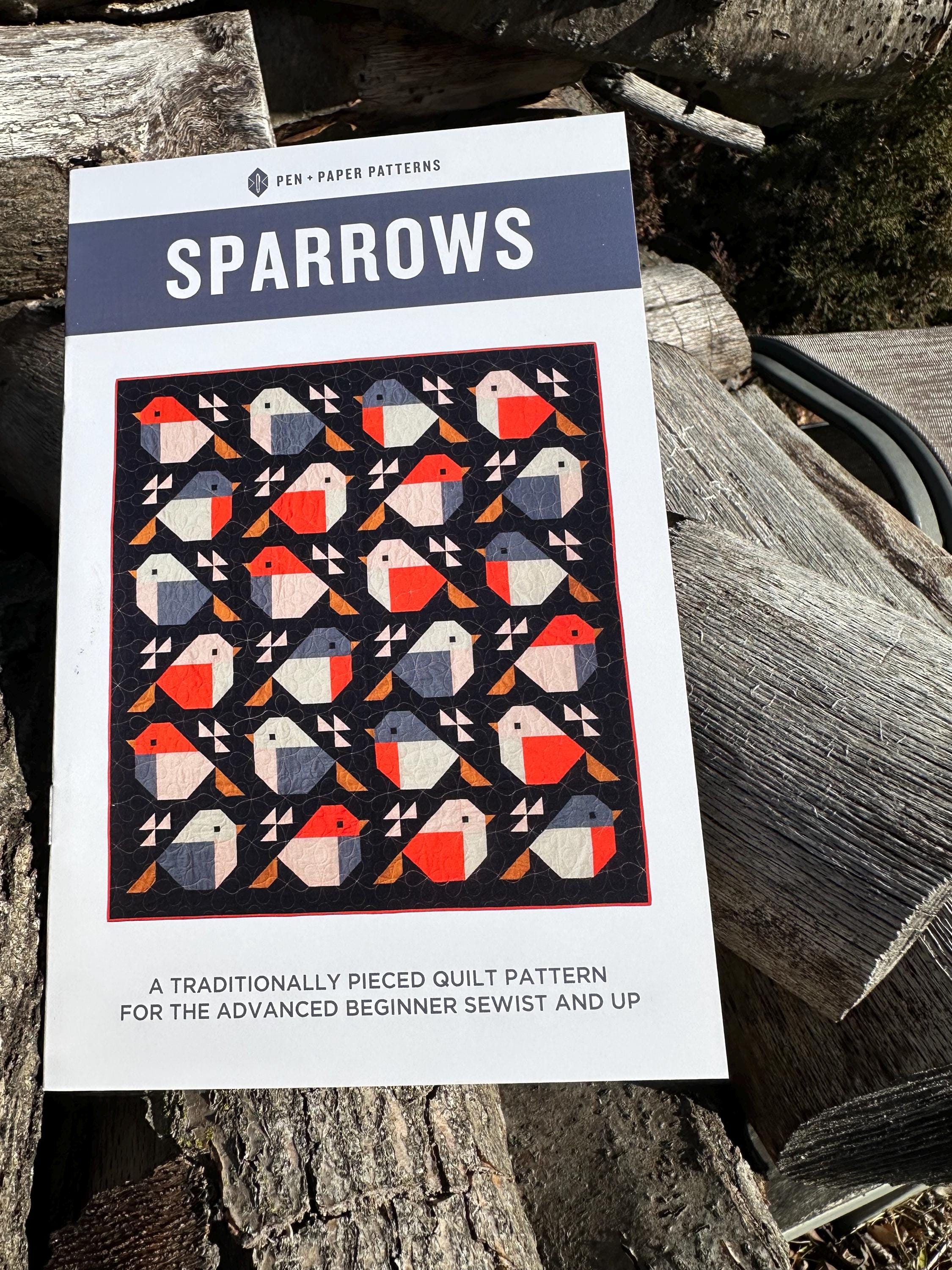 The Sparrows Quilt Pattern (65.5in x 71in) is a block based pattern for the advanced beginner sewist and up. The pattern includes instruction for making a scrappy version of the quilt using fat quarters.