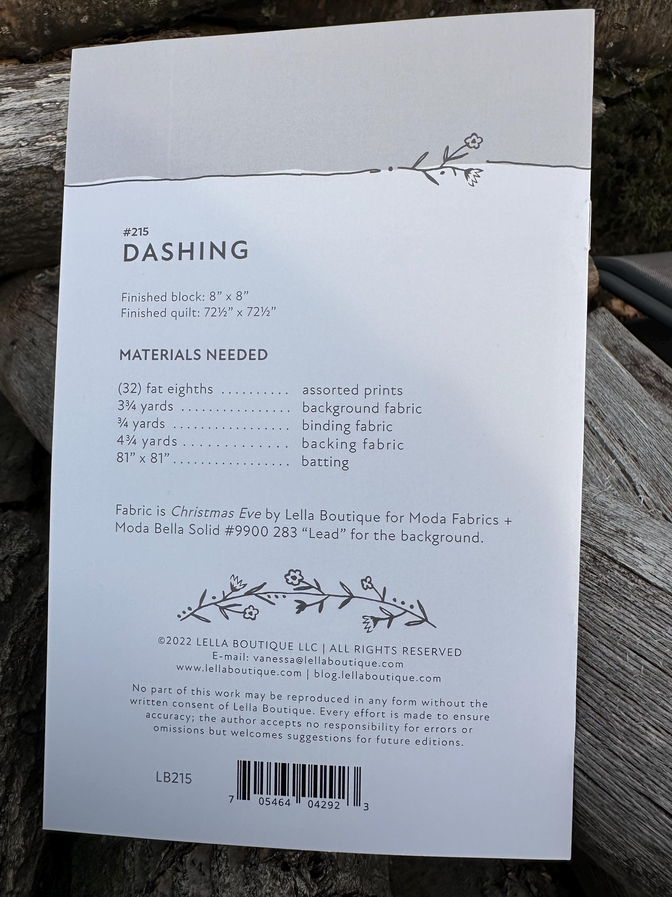 Fabric is Christmas Eve by Lella Boutique for Moda Fabrics + Moda Bella Solid #9900 283 “Lead” for the background