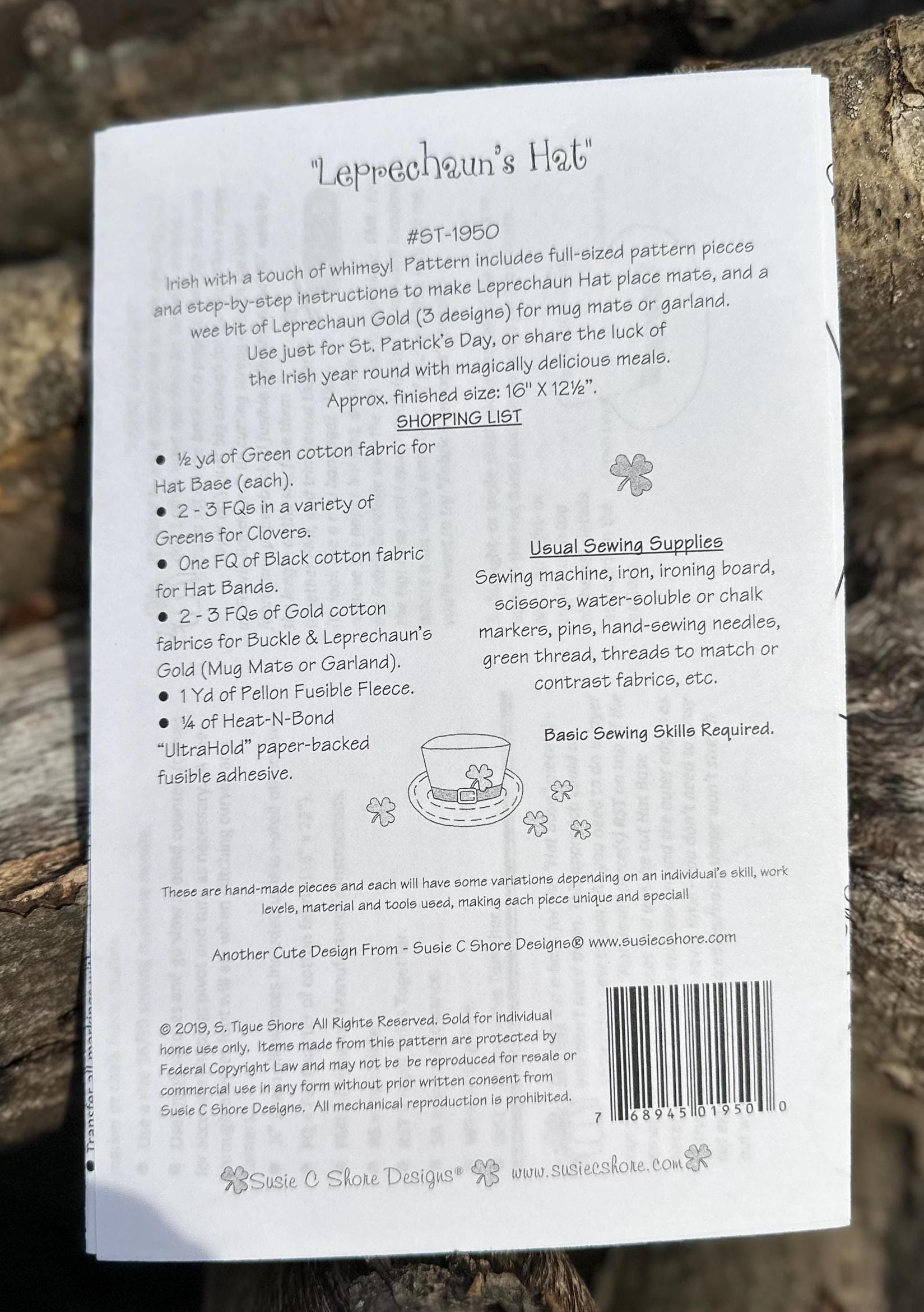 Leprechaun's Hat - Place Mats, Mug Mats and Garland Pattern - by Sussie C Shore