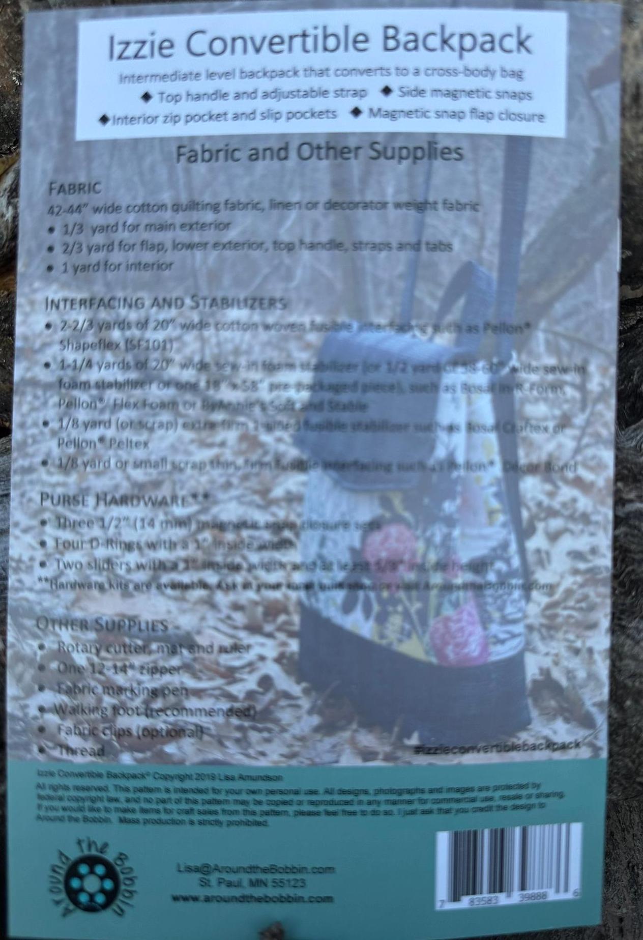 Izzie Convertible Backpack- Pattern by Around The Bobbin - ATB-191