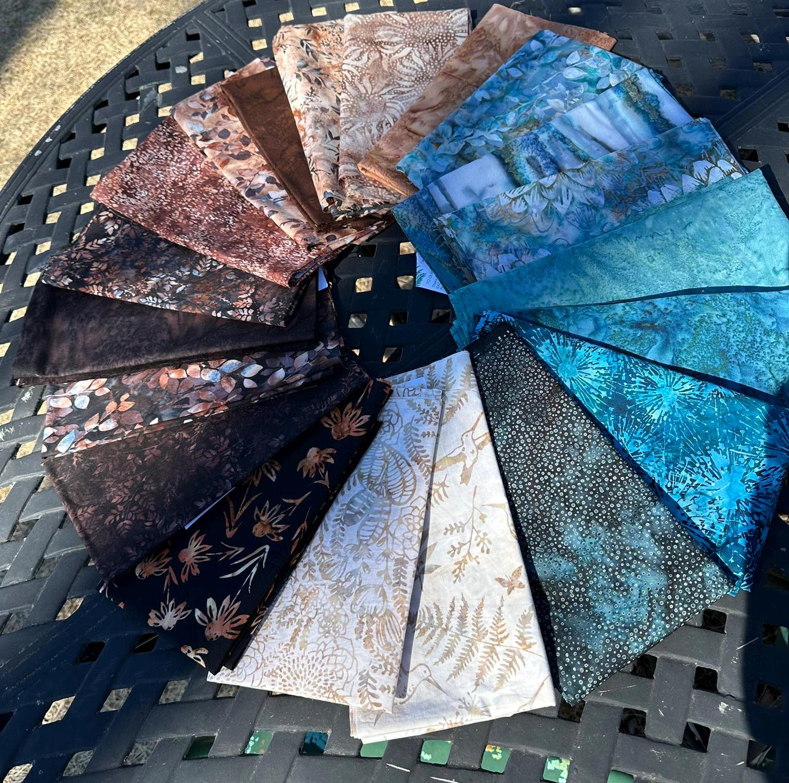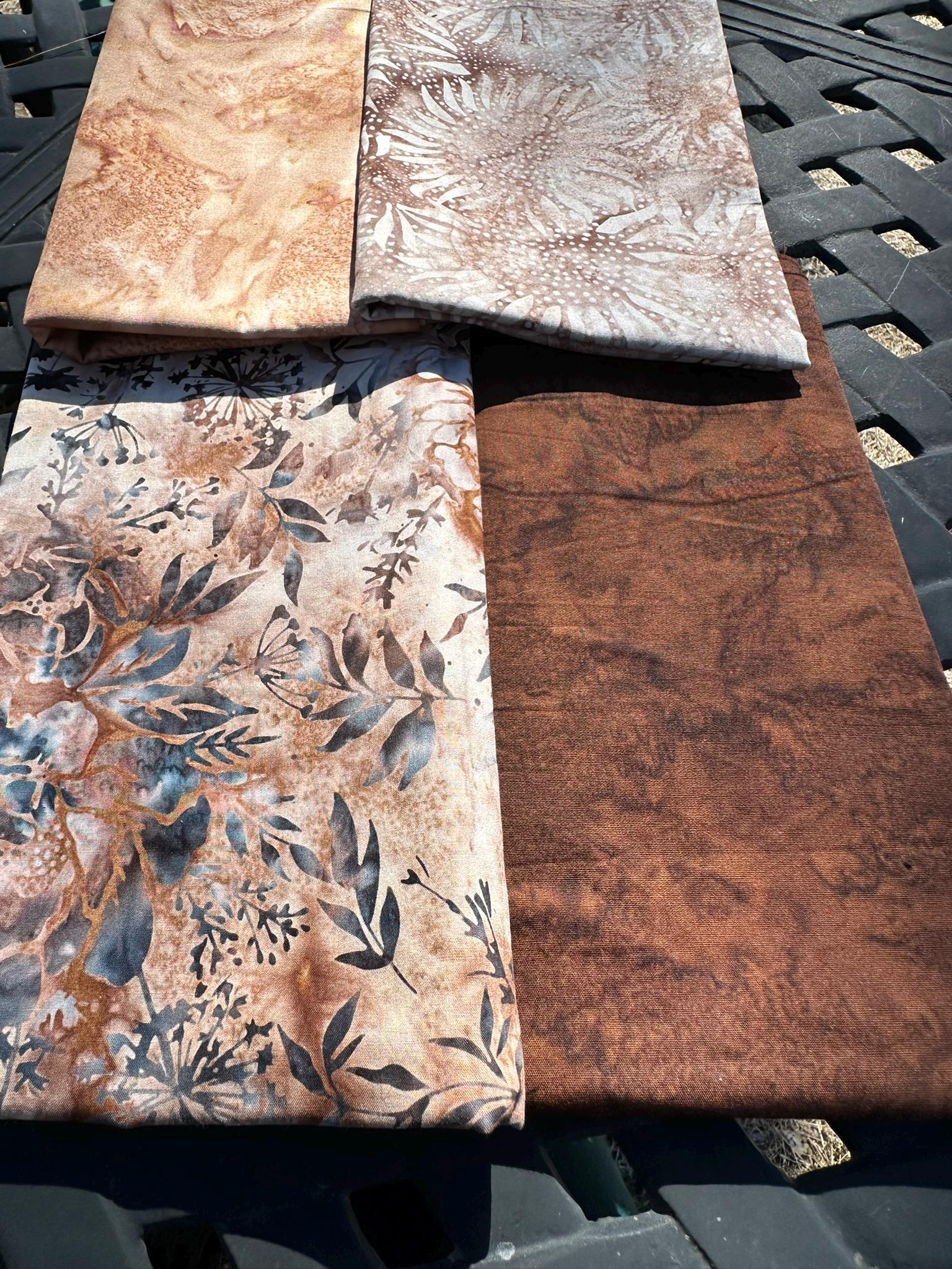 100% Cotton. 44/45" wide. Avg. bolt 15 yards. Hand-dyed batik made in Bali featuring original Hoffman design. Browns, Tans, Dashes and Dots
