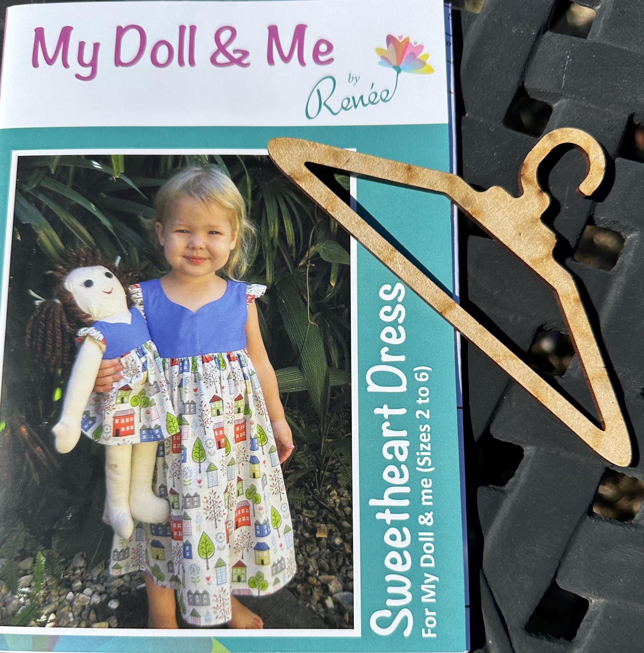 Sweetheart Dress is such a cute dress and this pattern includes instructions for a girls dress & a dolls dress. Pattern also comes with super cute wooden dolls hanger included.