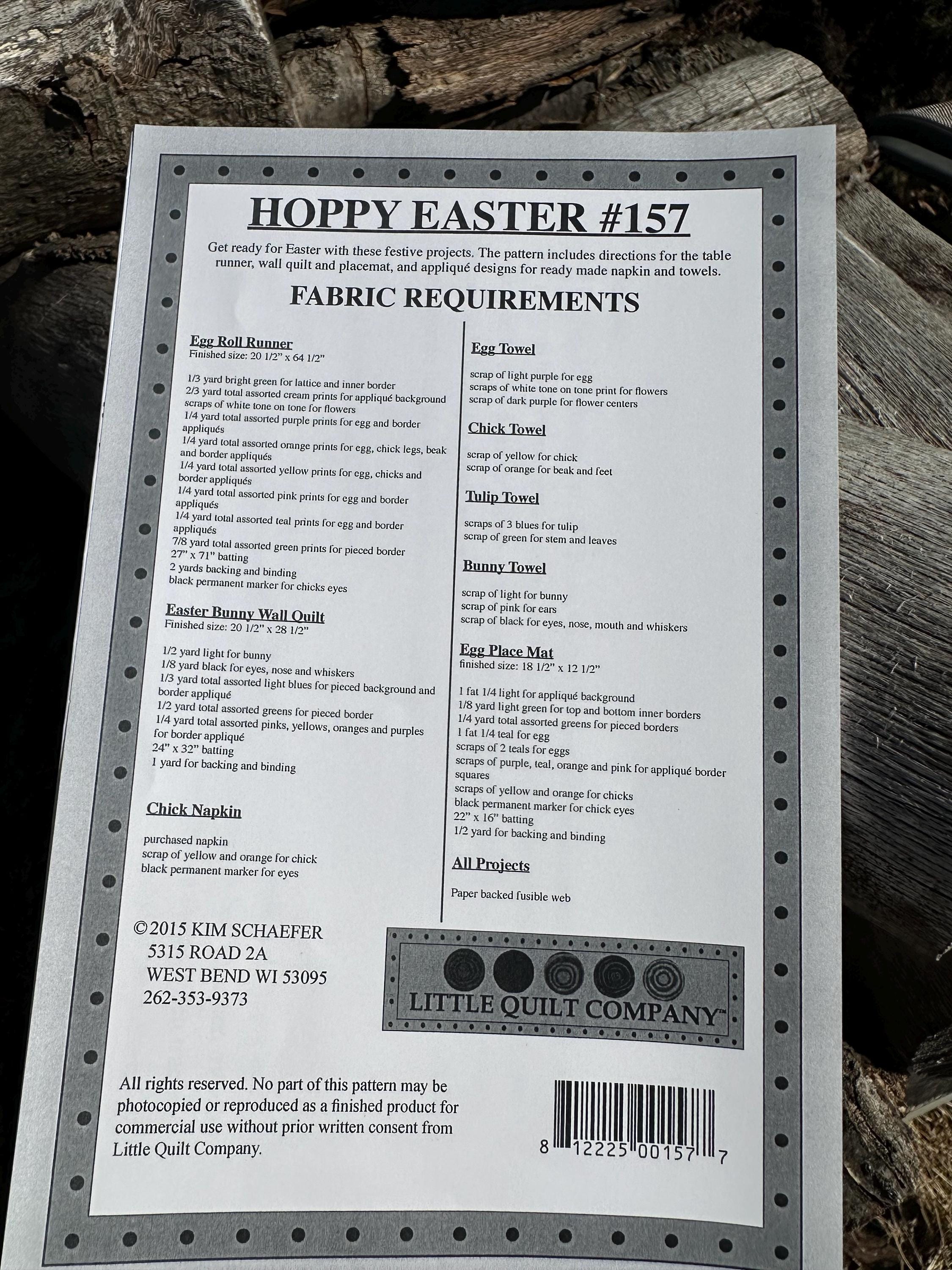 Hoppy Easter Pattern - Table Runner, Place Mat, Wall Quilt- By Little Quilt Company