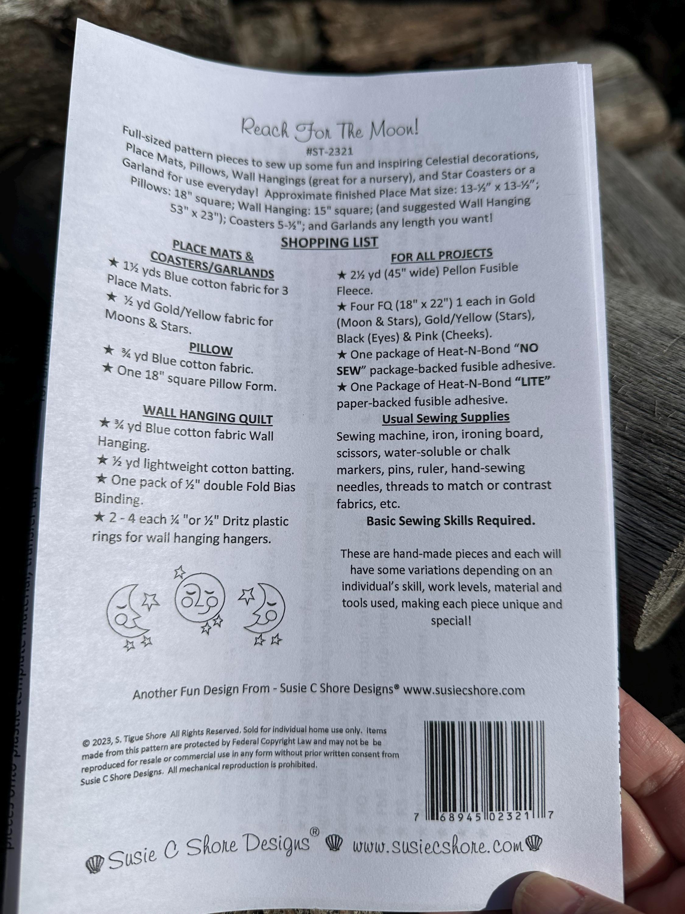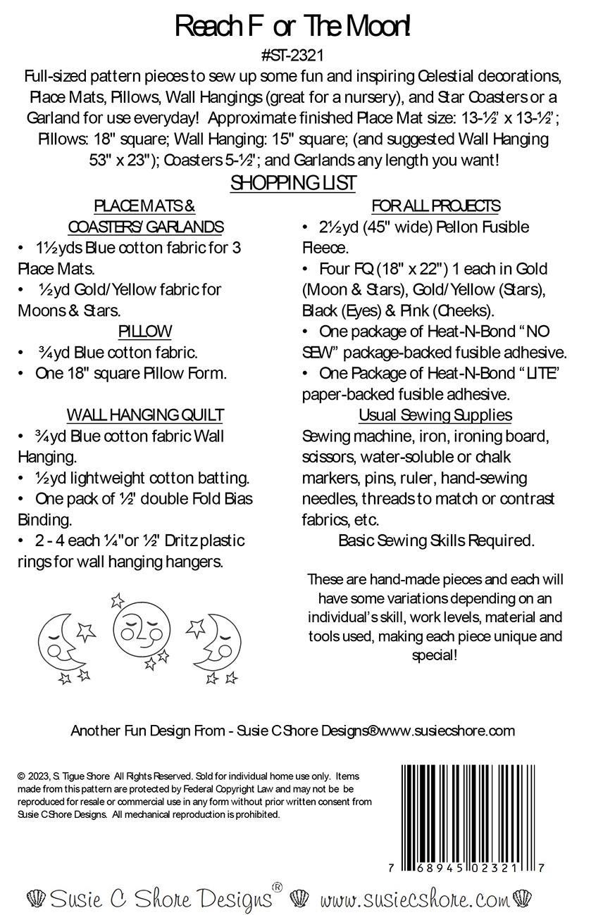 Reach For The Moon!- Placemat, coaster, Garland, Pillow Sewing Pattern - By Susie C Shore-ST-2321