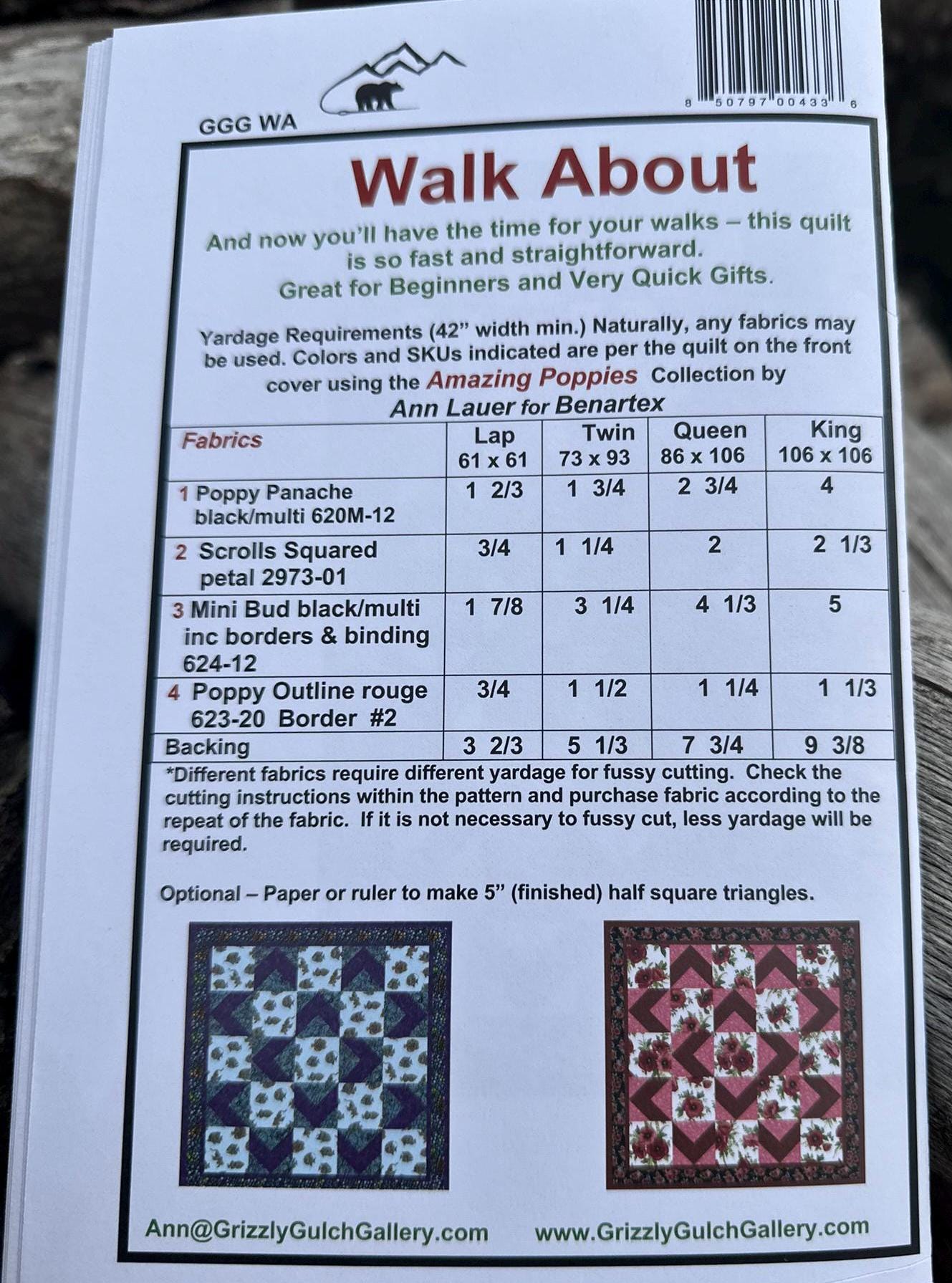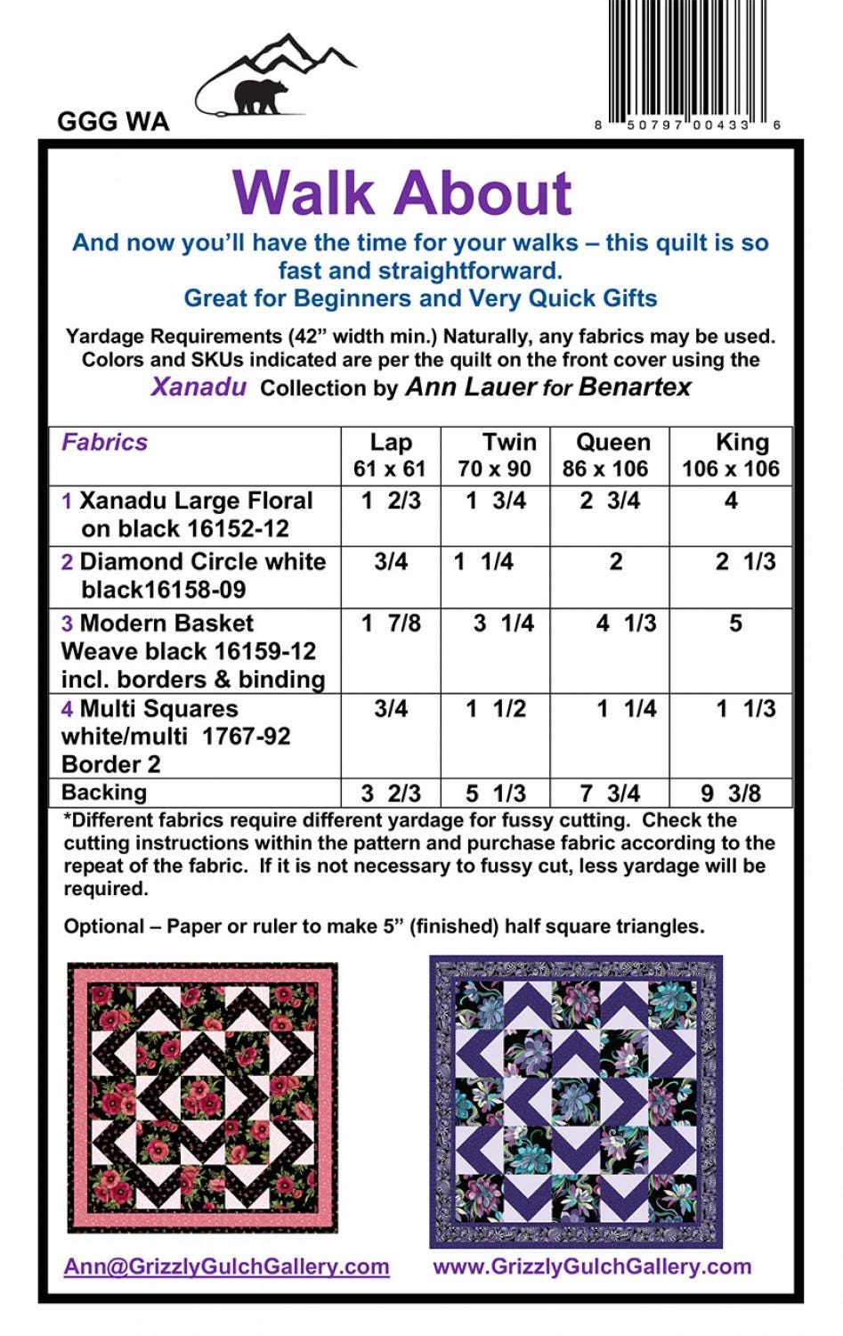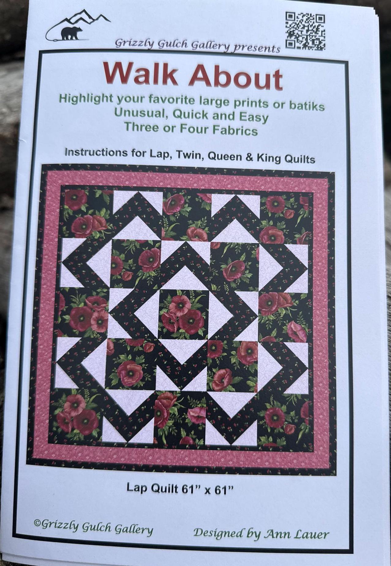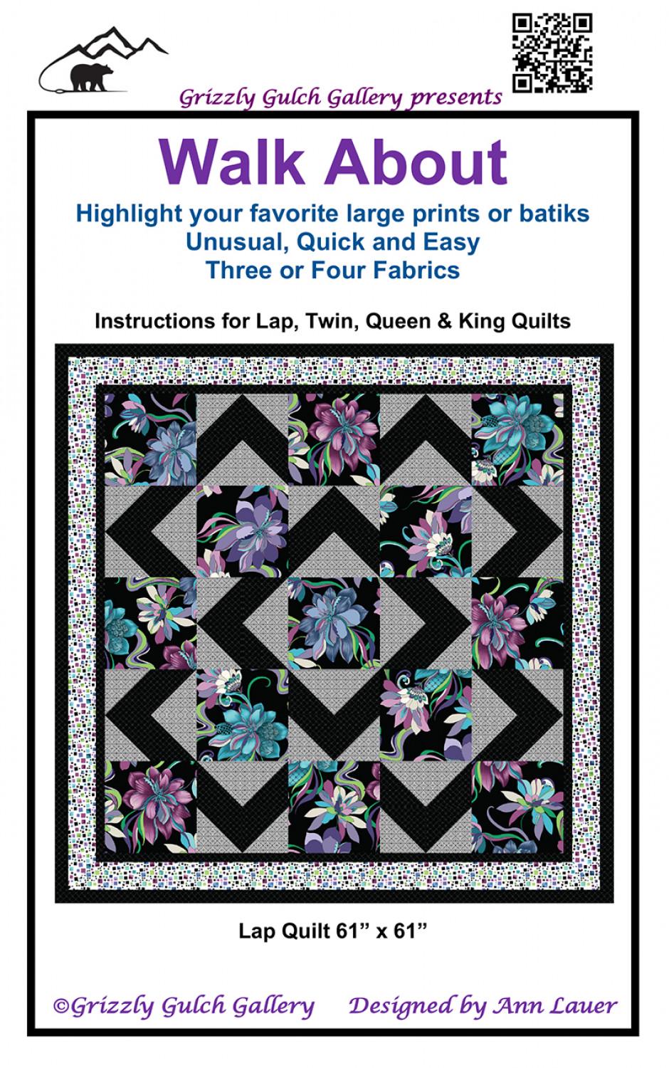 Walk About Quilt Pattern - Three Or Four Large Print or Batik Fabrics- Grizzly Gulch Gallery.