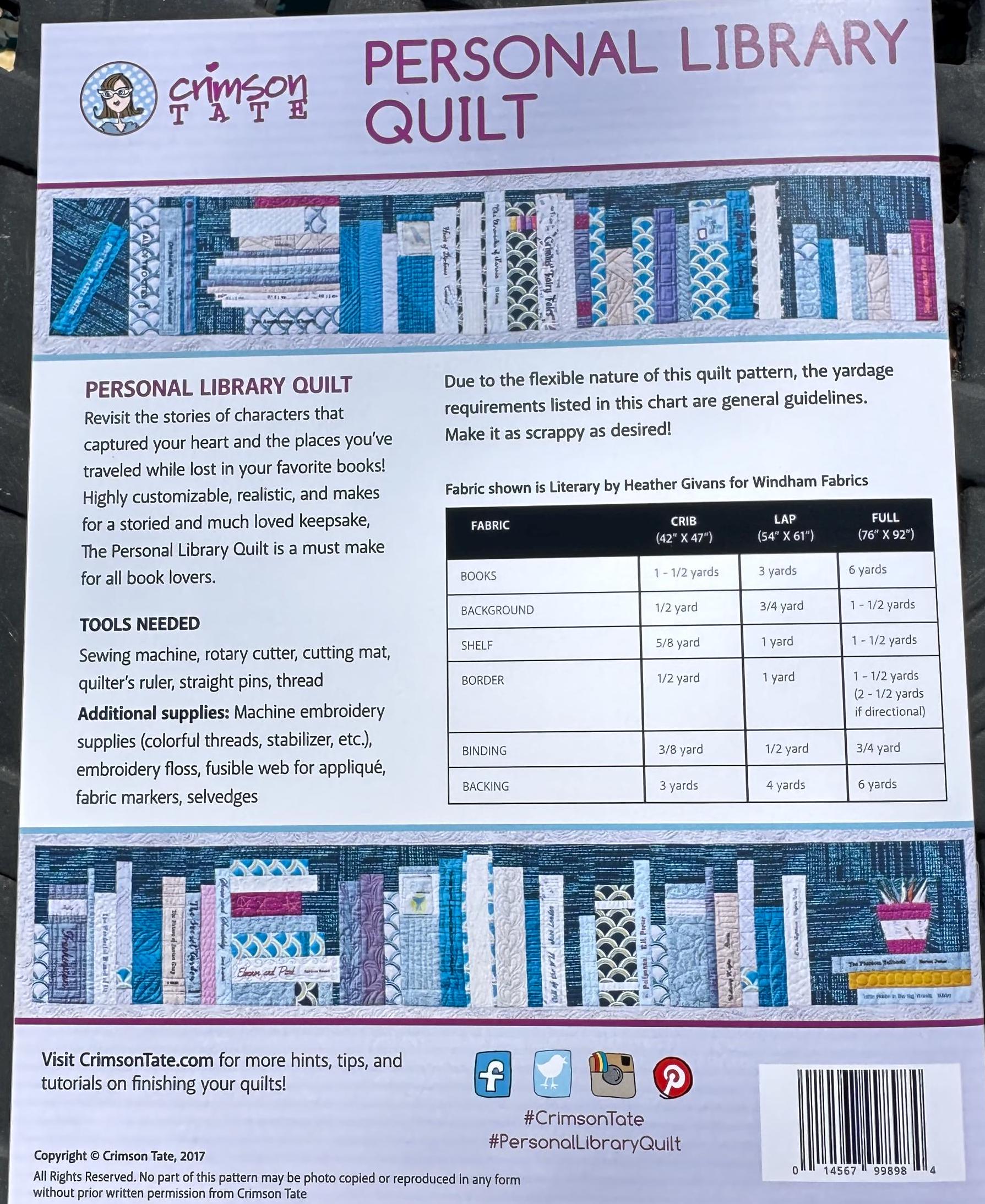Personal Library Quilt Pattern- Add your Favorite Book Titles - By Crimson Tate