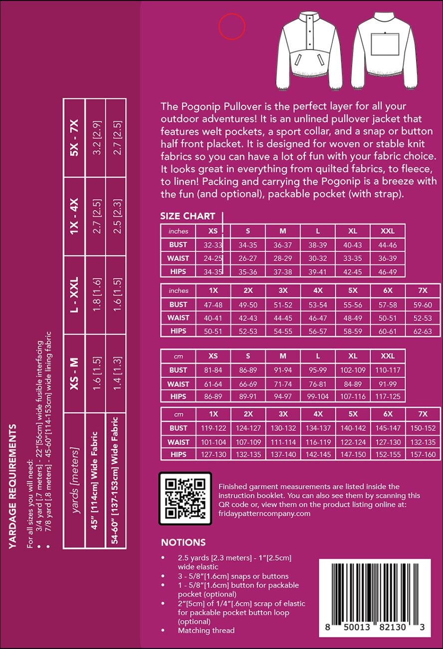 Pogonip Pullover Jacket sewing Pattern - Friday Pattern Co. FPC-PP038
