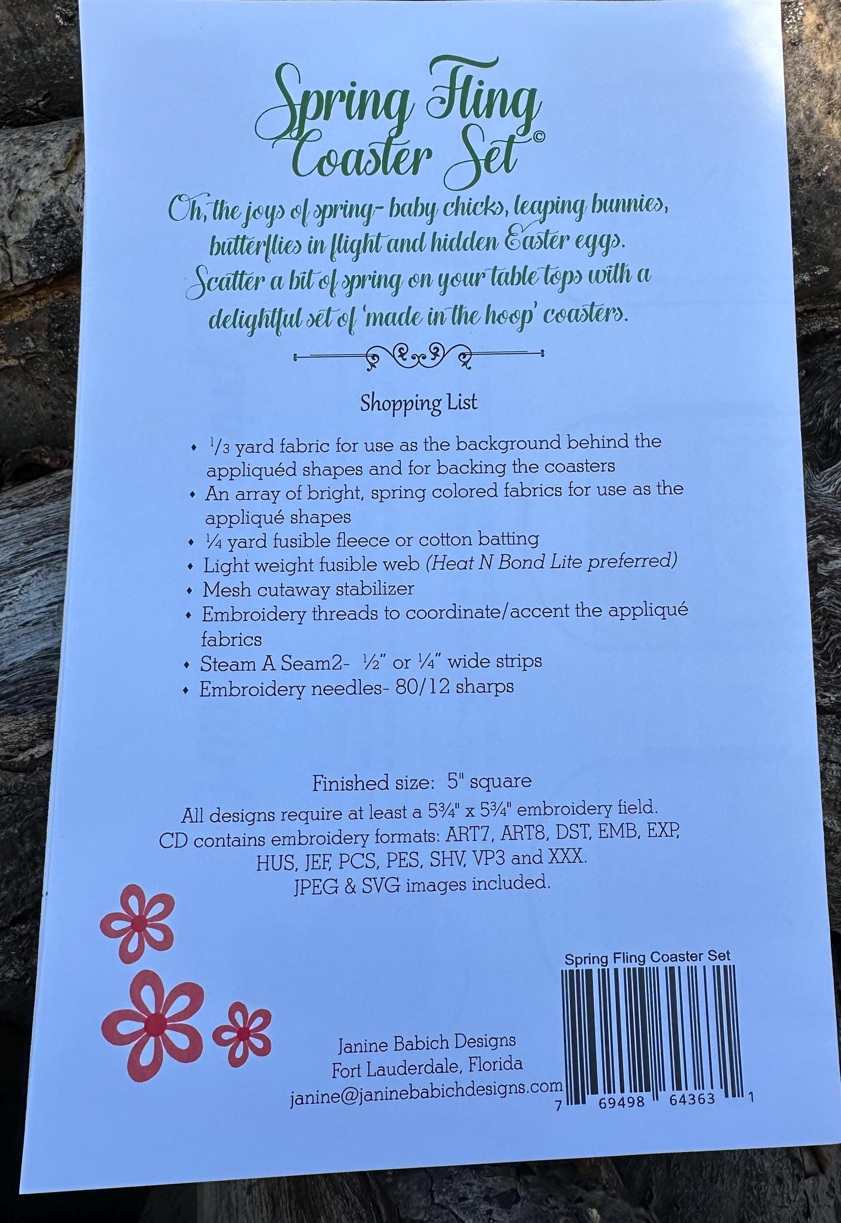 Spring Fling Coaster Set- Macine Embroidery Pattern - MJBDSFC