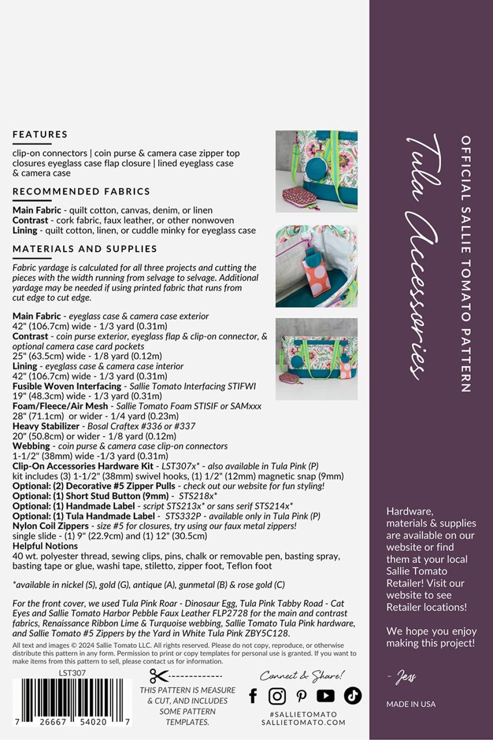 Fun & practical clip-on accessories, to use individually or as a set by Sallie Tomato with Tula Pink. Create a special place for important items in your bags! This collection of small accessories is ideal for organizing any tote, backpack or duffle bag. The clip-on hardware adds versatility, attaching to exterior or interior hardware of your bag. This pattern is a perfect companion to our LST306 Tula Tote Pattern, but they’re fun to use all on their own!