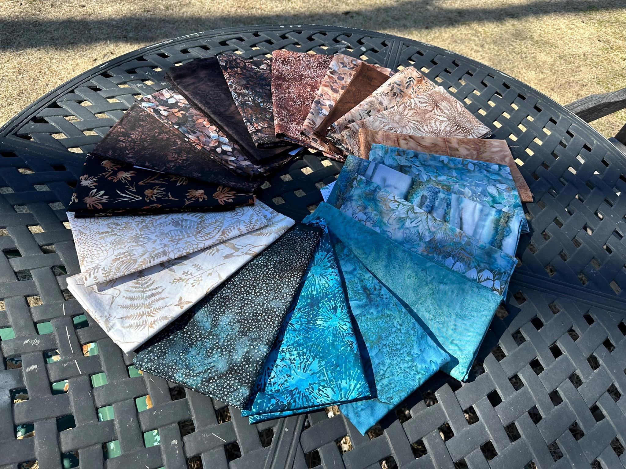 100% Cotton. 44/45” wide. Avg. bolt 15 yards. Mottled style. Hand-dyed in Bali.