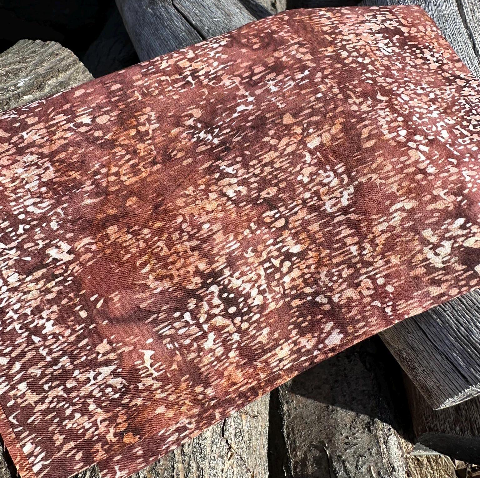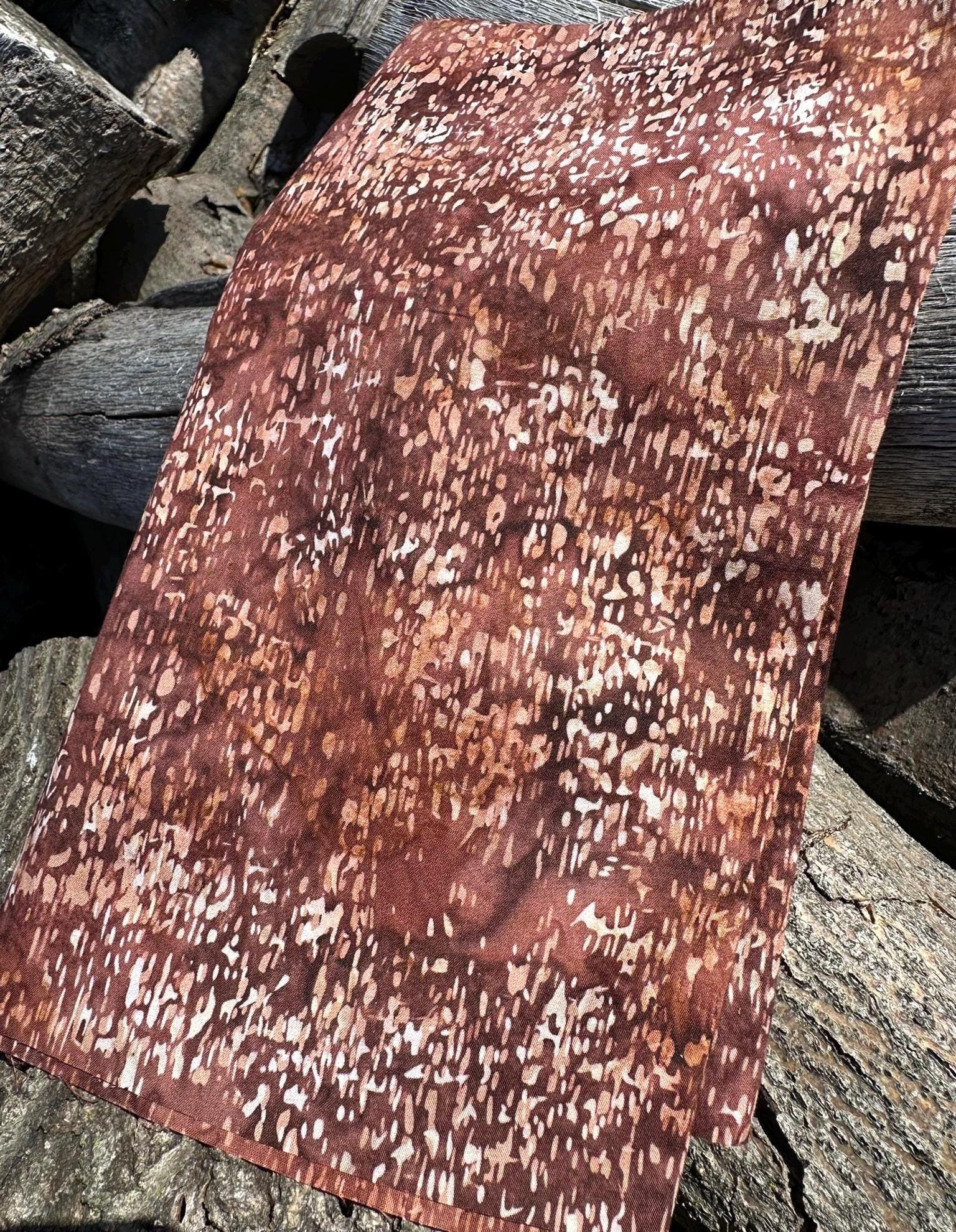100% Cotton. 44/45" wide. Avg. bolt 15 yards. Hand-dyed batik made in Bali featuring original Hoffman design. Browns, Tans, Dashes and Dots
