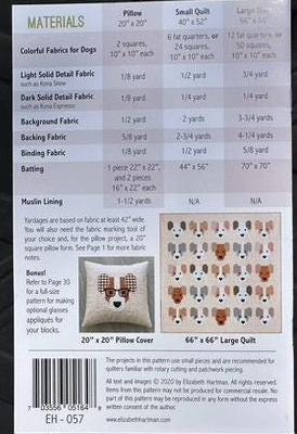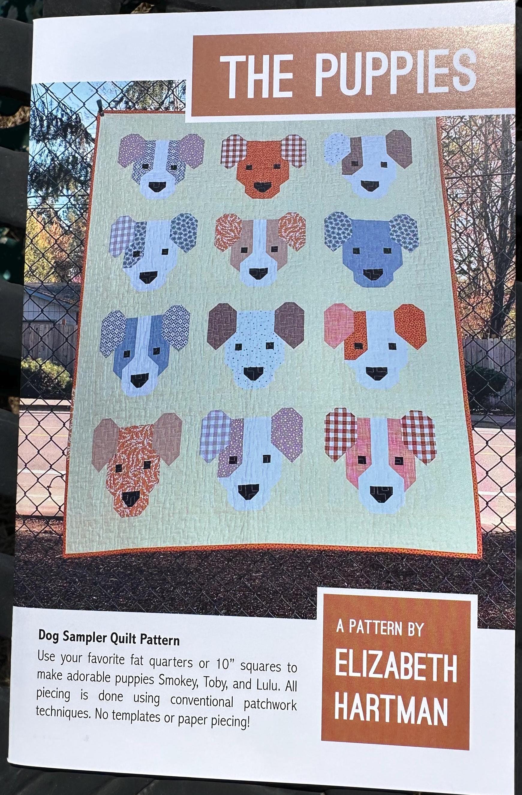 The Puppies is a patchwork sampler pattern featuring three dog blocks: Smokey, Toby, and Lulu. These adorable puppies are made of square and rectangular pieces sewn together using conventional patchwork techniques. No templates or paper piecing! Pattern includes two quilt sizes, both of which can be made using either 10” x 10” squares or fat quarters