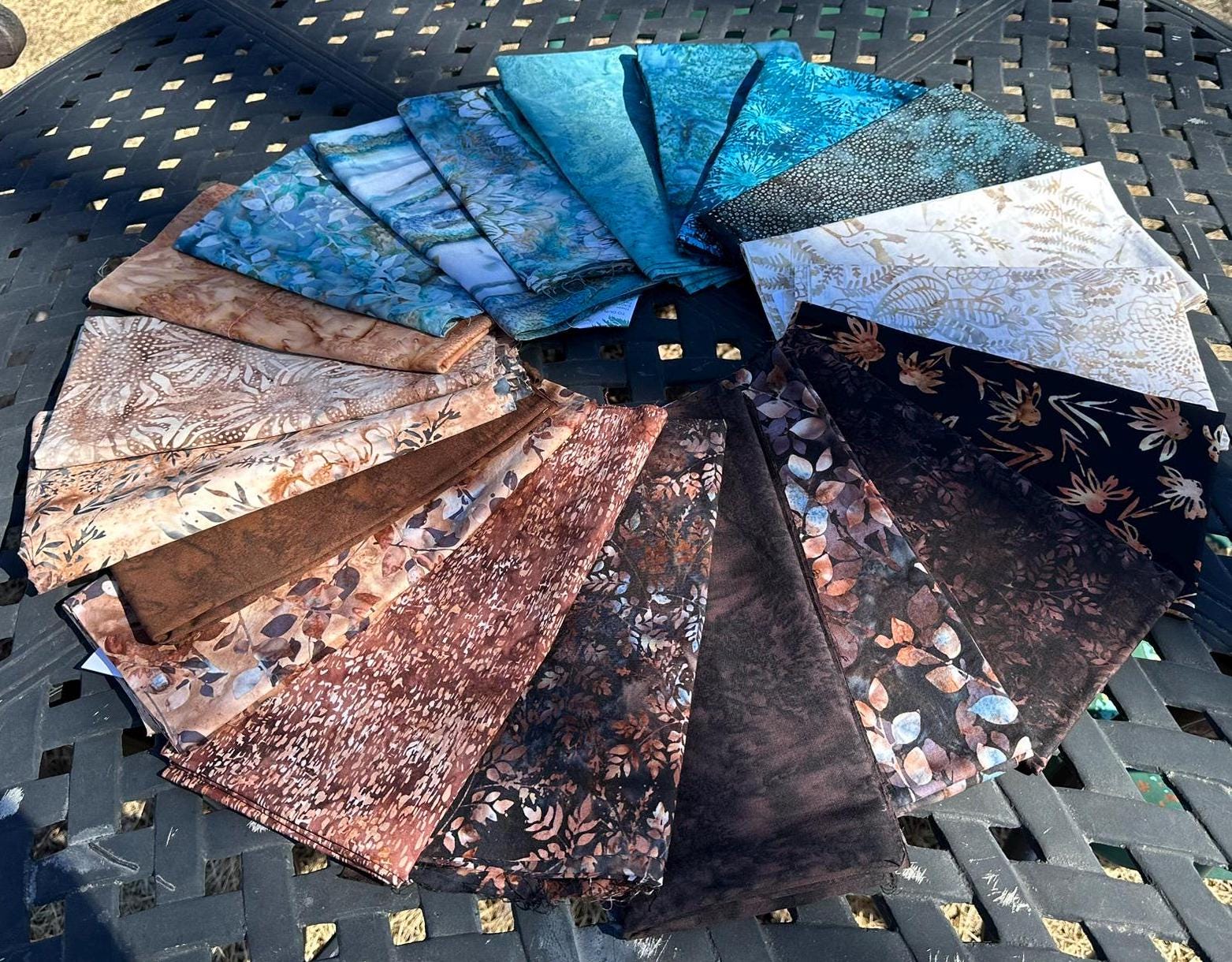 100% Cotton. 44/45” wide. Avg. bolt 15 yards. Mottled style. Hand-dyed in Bali.