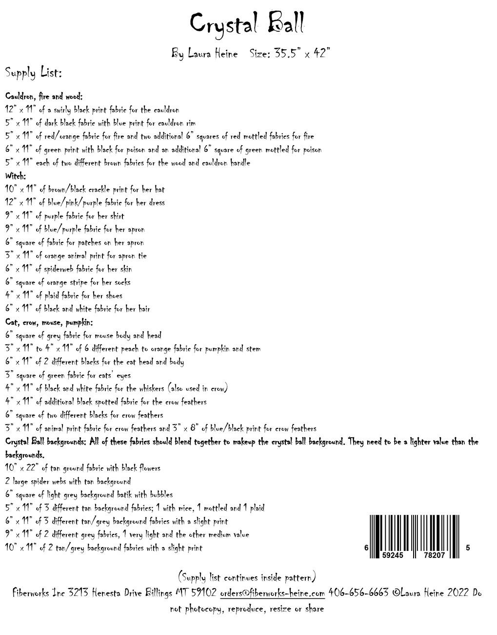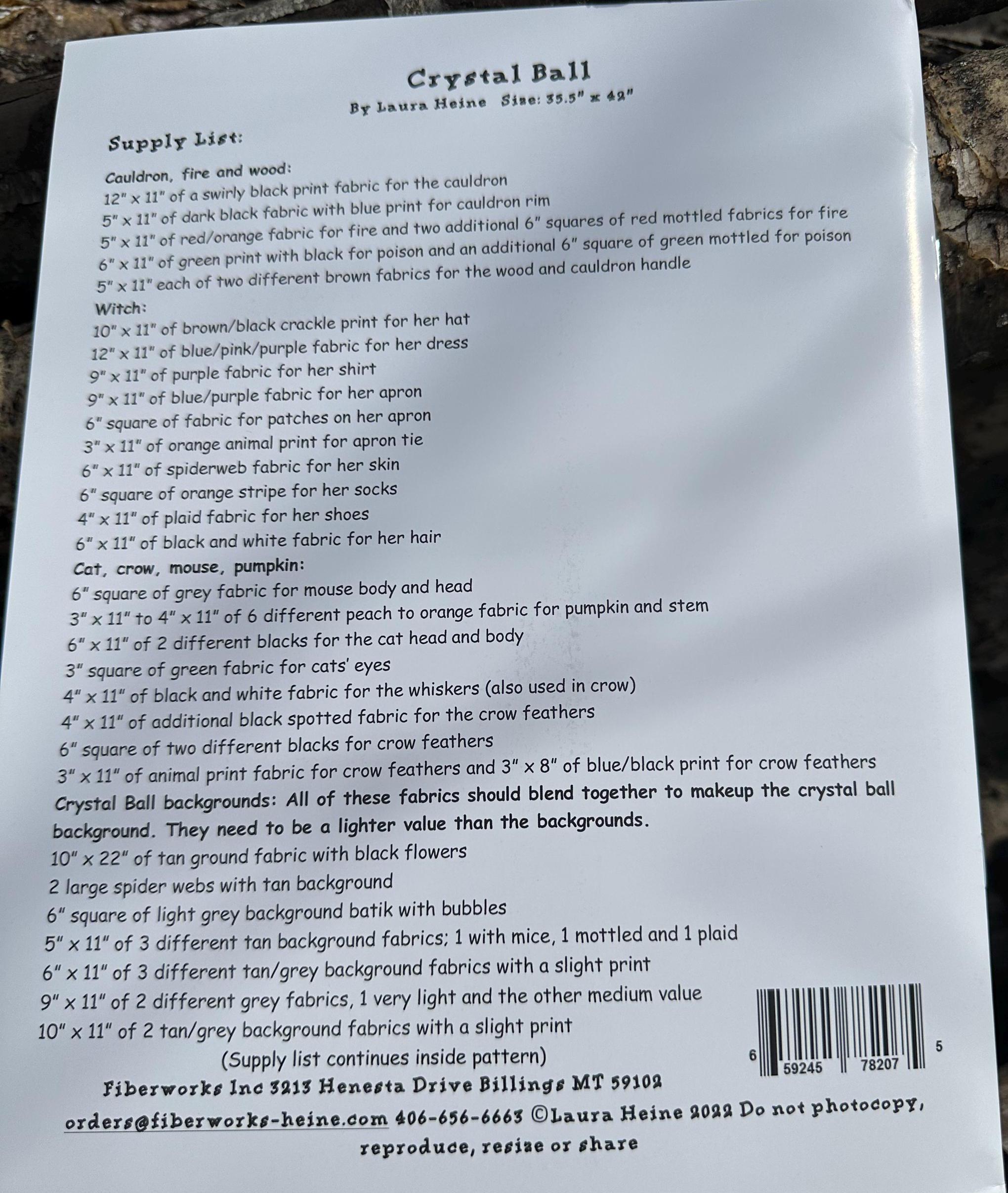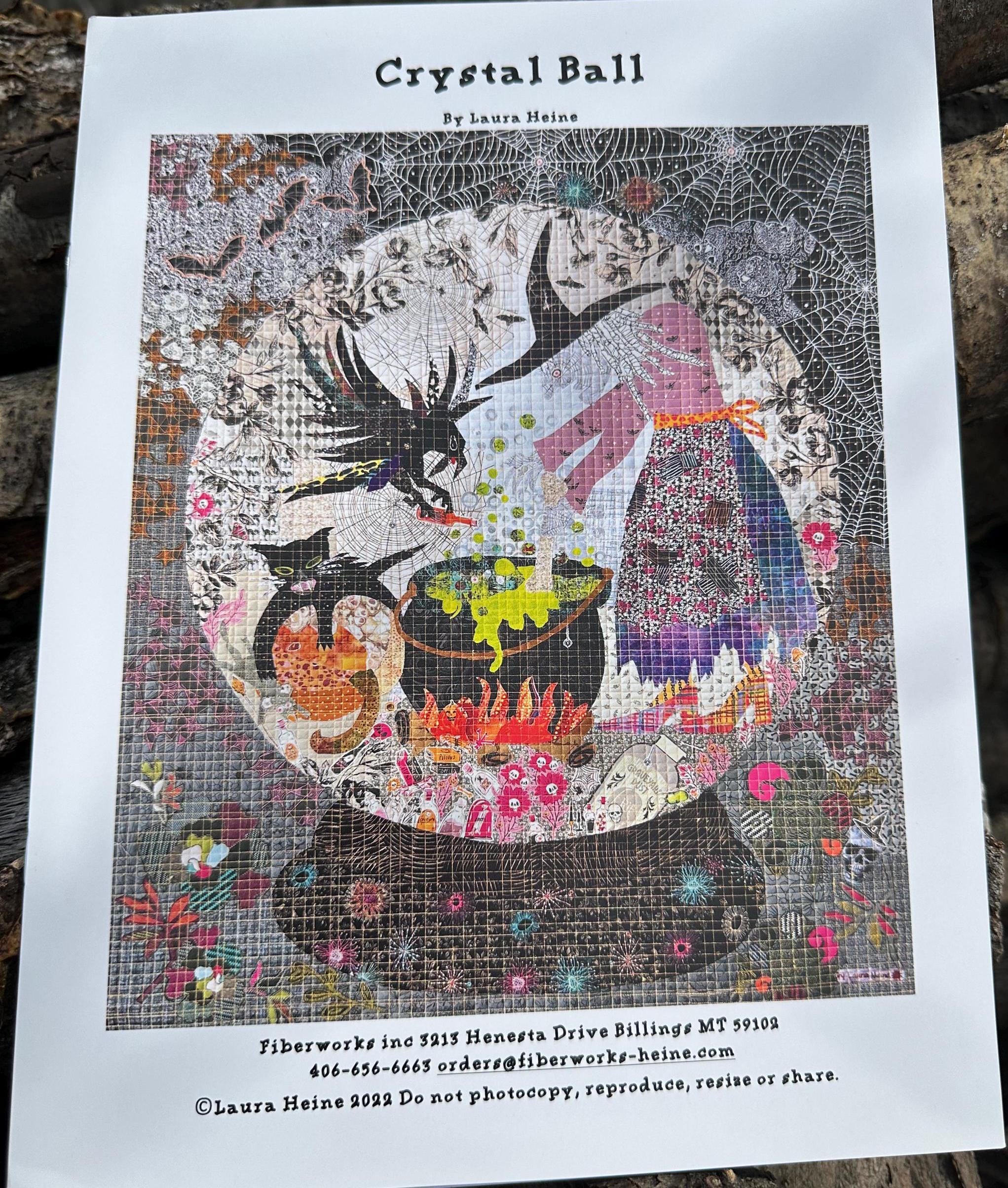 Crystal Ball Collage Pattern by Laura Heine. This scary witch is casting spells with her poisoned cauldron in her crystal ball. Beware of her magical potions that her raven is protecting. This quilt will be a perfect addition to your home for Fall. Pattern includes colorful step by step instructions to complete this quilt.