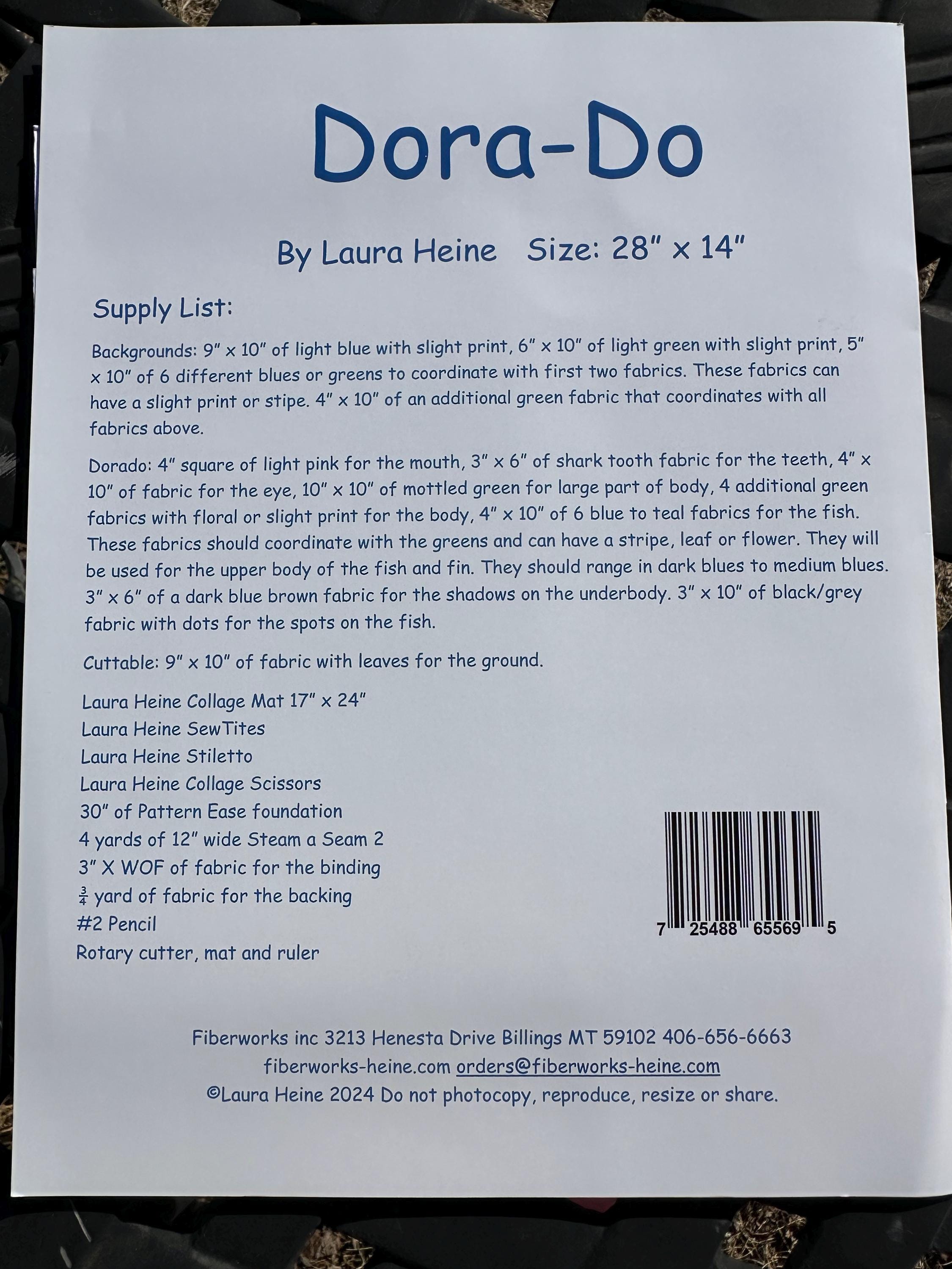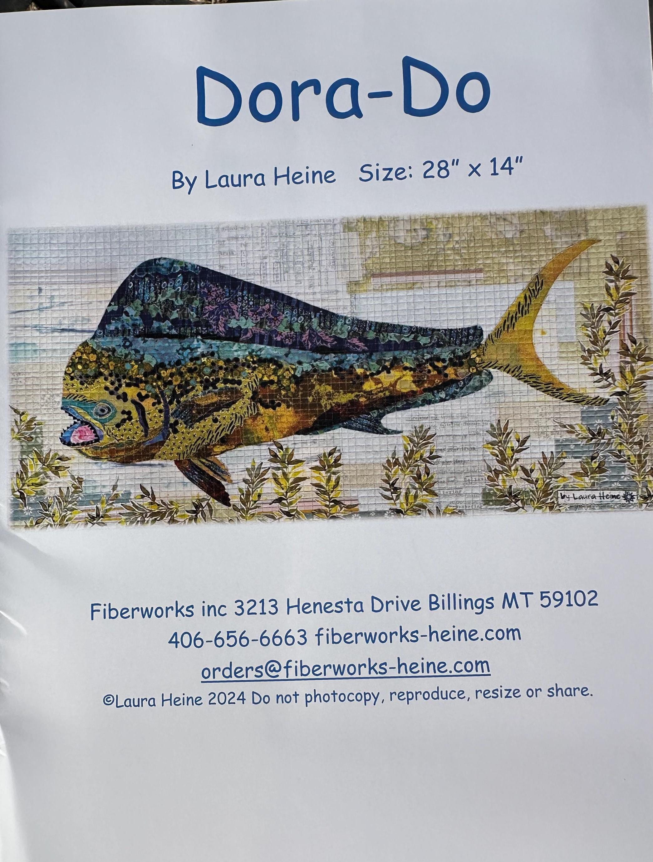 Dora-Do Collage Pattern by Laura Heine. This quilt is filled with vibrant greens, yellows and blues found on the Dorado make it one of the most recognizable fish in the ocean. Dorado's are known to be the most colorful fish in the sea. They are also known as the Golden One or Mahi Mahi. This pattern includes a full size pattern with colorful step by step instructions. Finished size 28"x14".