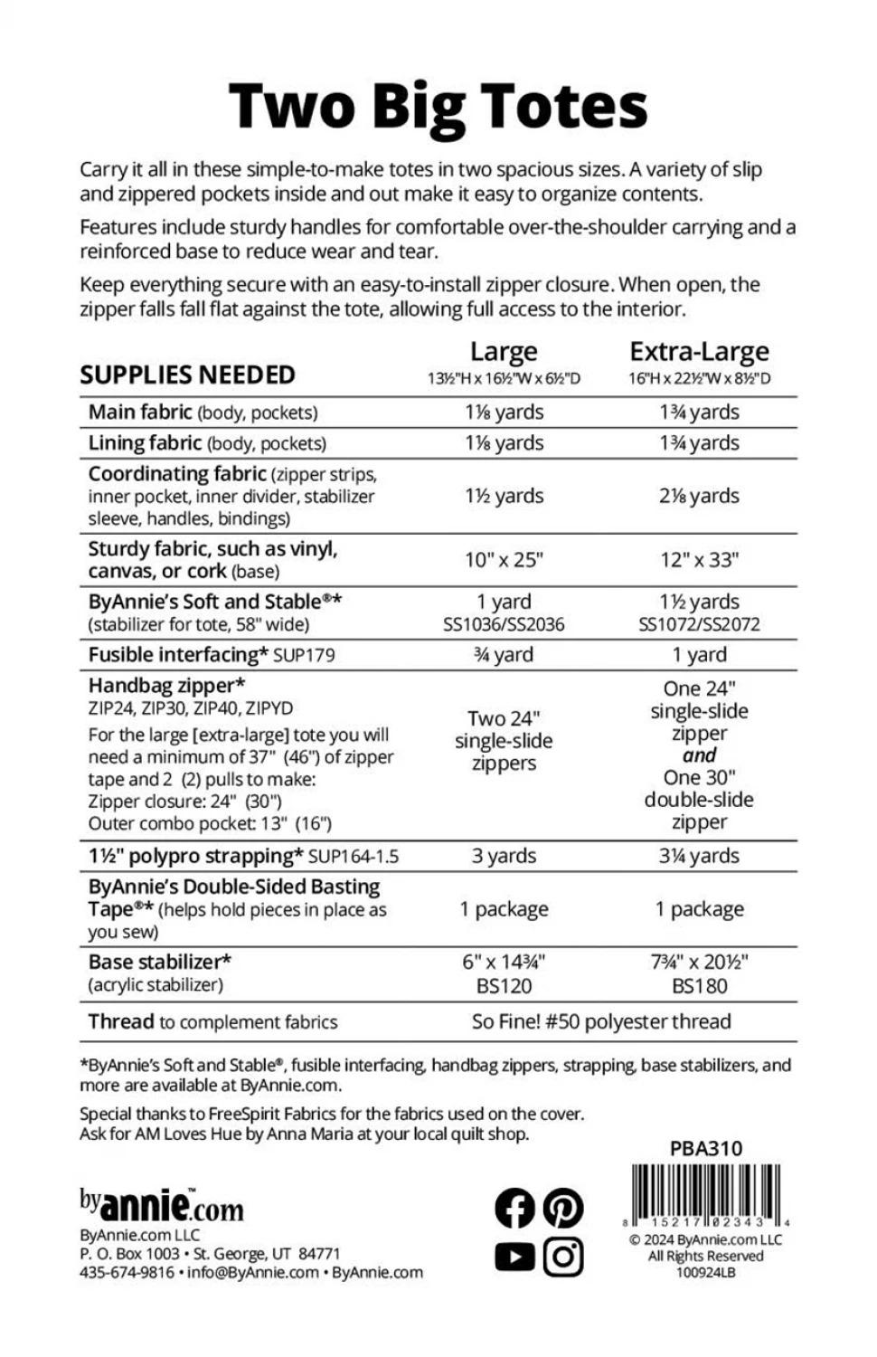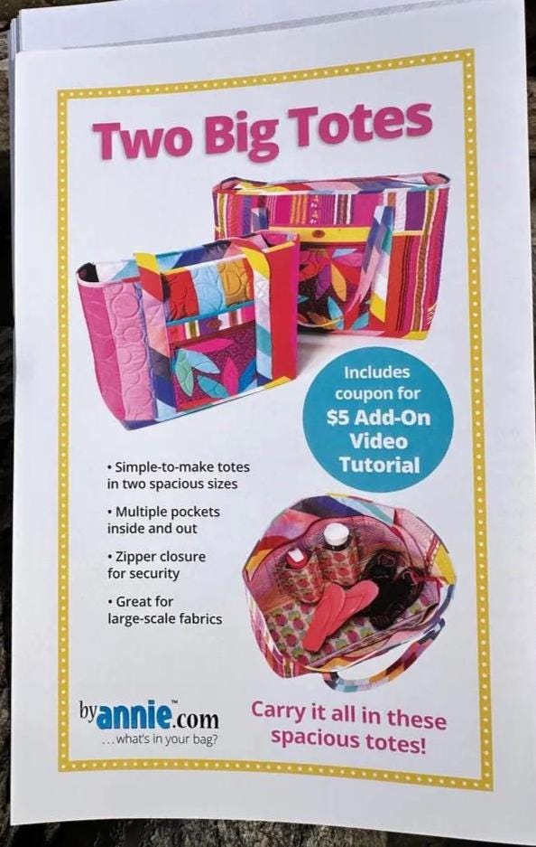 This versatile pattern includes instructions for creating two spacious totes—large and extra-large—perfect for everything from beach days and grocery runs to weekend getaways and sewing retreats.
