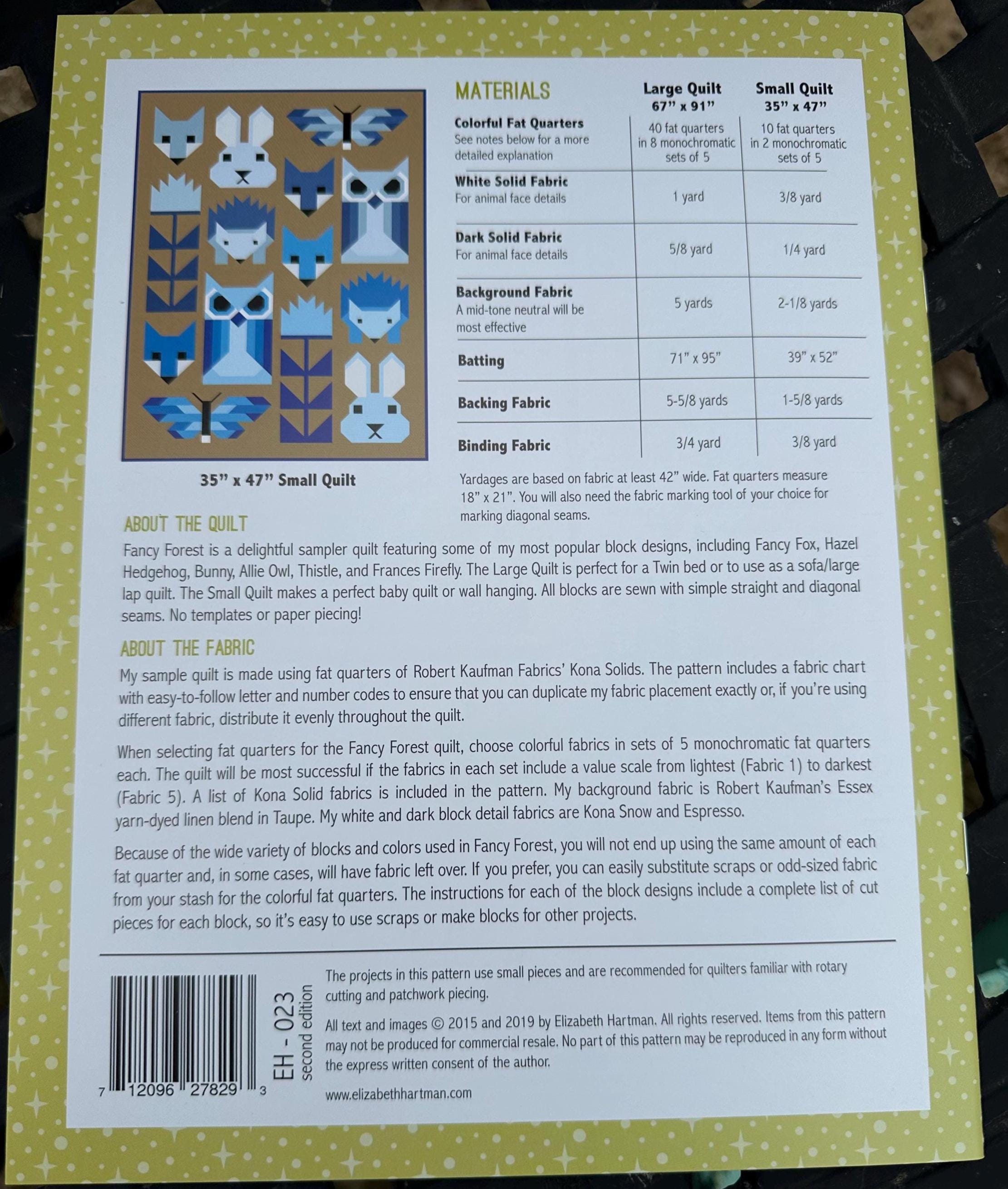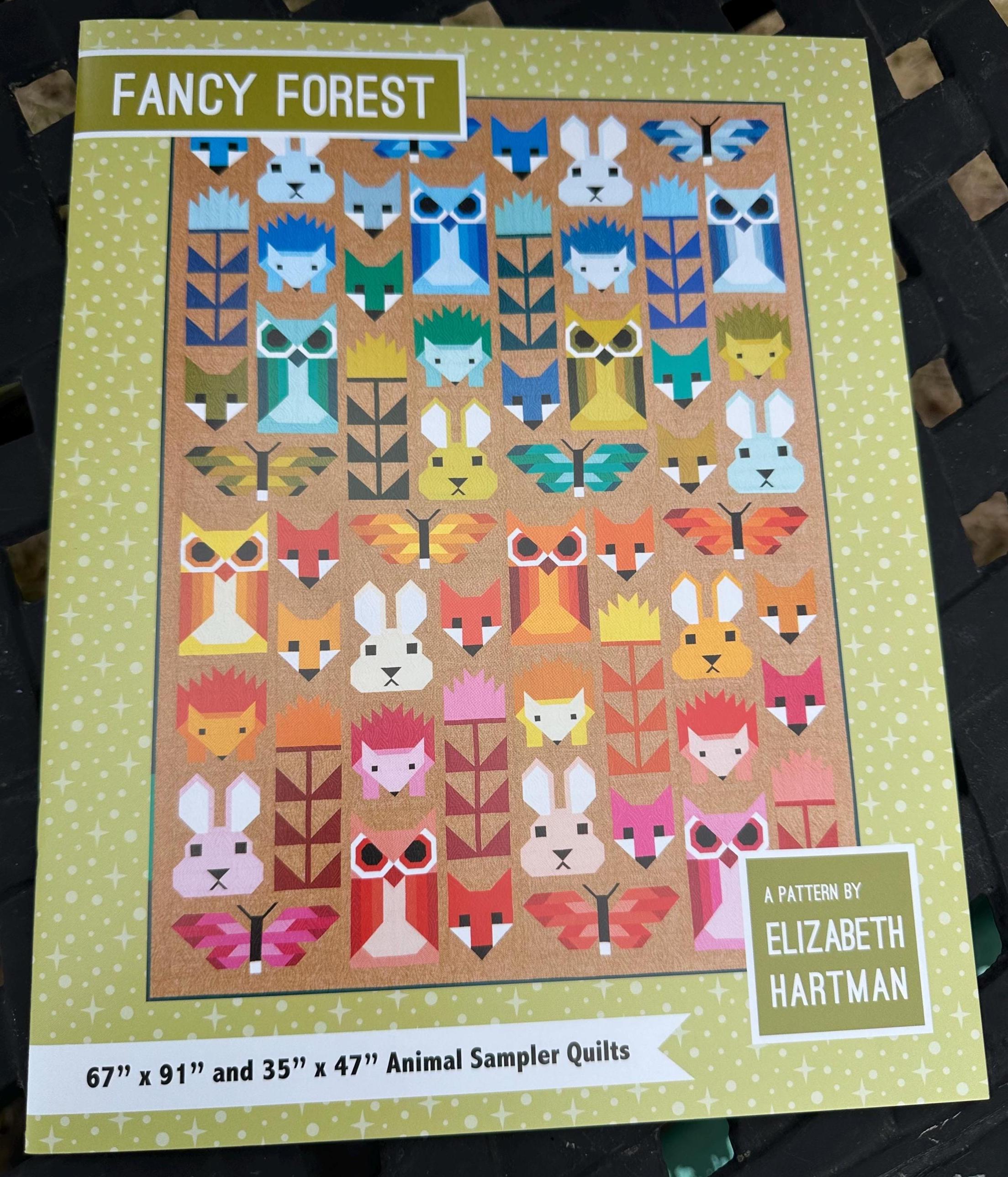 Discover the delightful Fancy Forest quilt pattern, perfect for creating charming animal sampler quilts in two sizes: large at 67 inches by 91 inches and small at 35 inches by 47 inches. This pattern brings to life a vibrant array of forest creatures including owls, foxes, rabbits, and butterflies, all set against a backdrop of colorful and intricate designs. Ideal for both B2B and B2C markets, this pattern invites quilters to explore their creativity with a mix of bold and pastel colors, featuring detailed illustrations of each animal. The quilt showcases a harmonious blend of modern and whimsical elements, making it a standout piece for any collection.