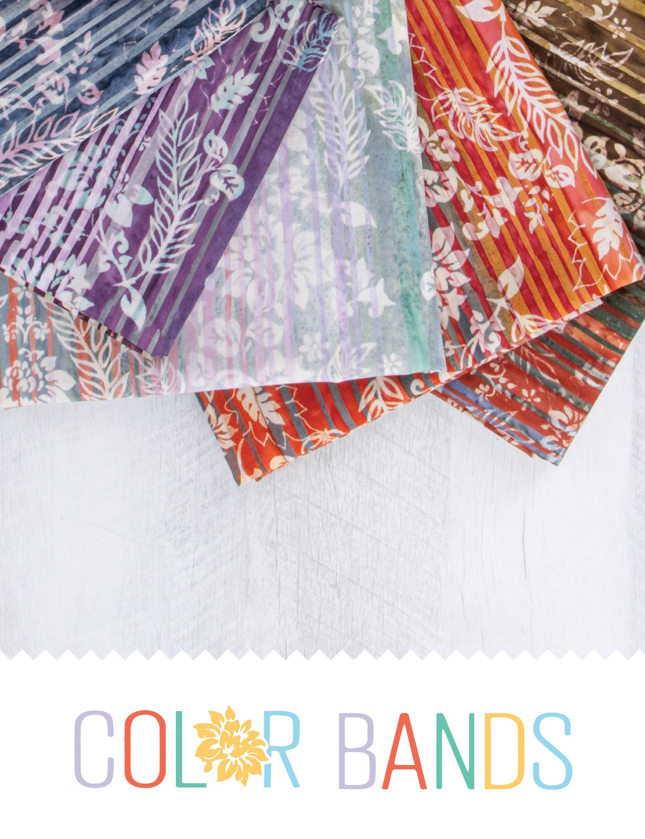 Riley Blake Designs batiks are ethically sourced and made with the highest quality fabric. Each hand-dyed print is designed and developed by cultivating relationships with true batik artisans in Indonesia. Due to the hand-crafted nature of batiks, fabric may vary from image. The Color Bands collection pairs hand-dyes and mottled pieces for a dramatic effect.