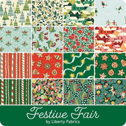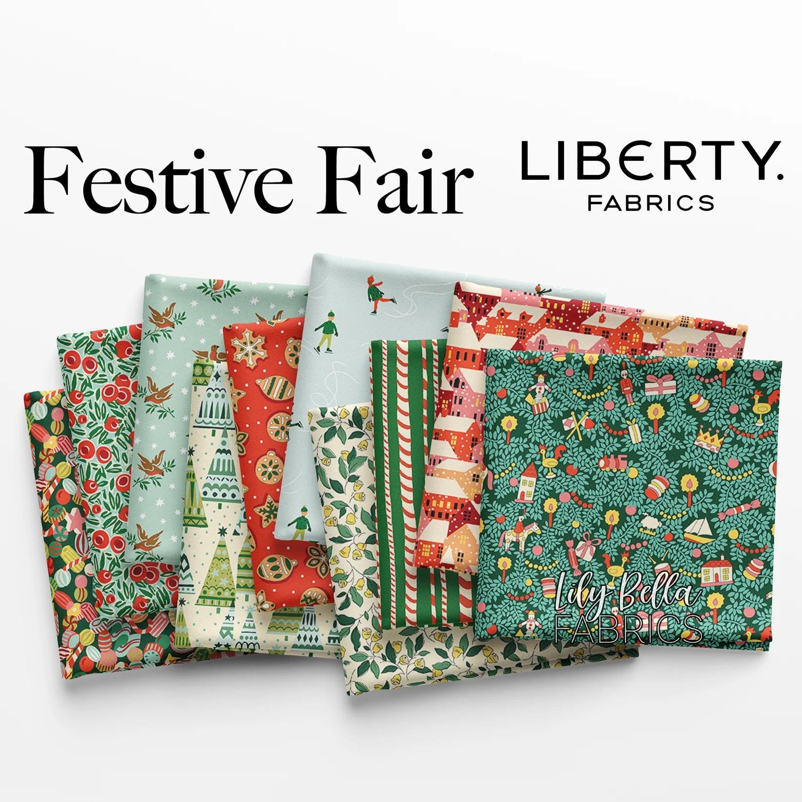 Have yourself a merry little Christmas with Festive Fair, a seasonal collection from Liberty Fabrics. This festive collection is adorned with sprigs of holly, folk art forests, sweet stripes and snowy suburbs in pretty pine, holly red and icy blue hues, perfect for decking the halls this holiday season.