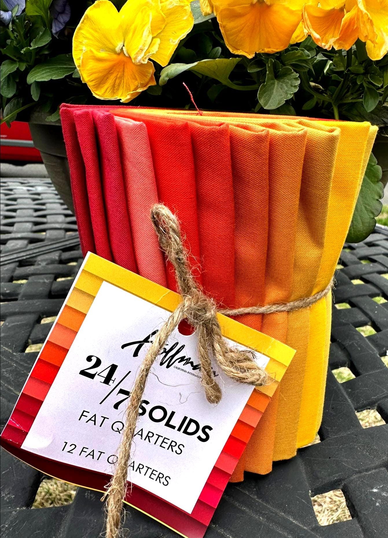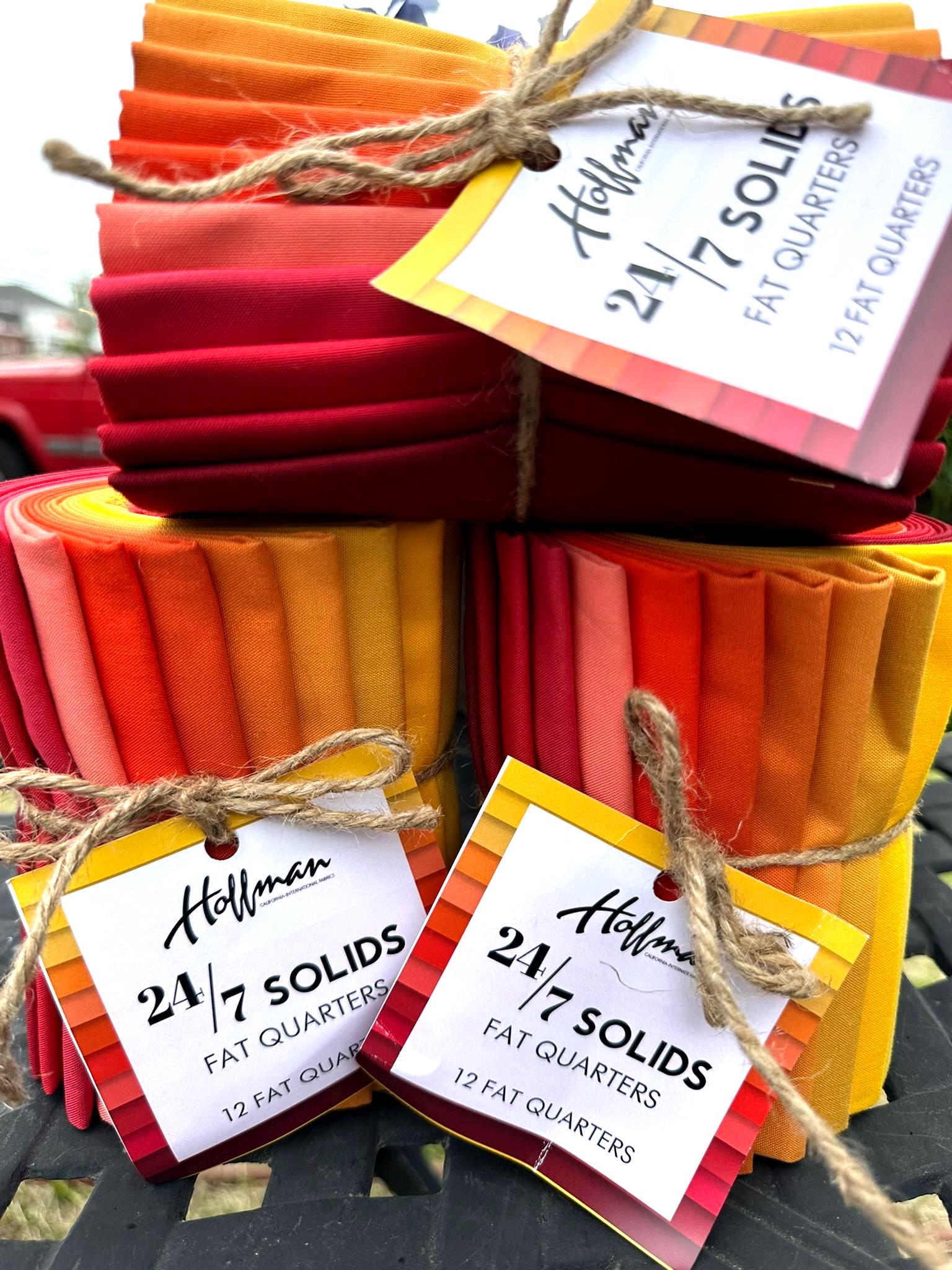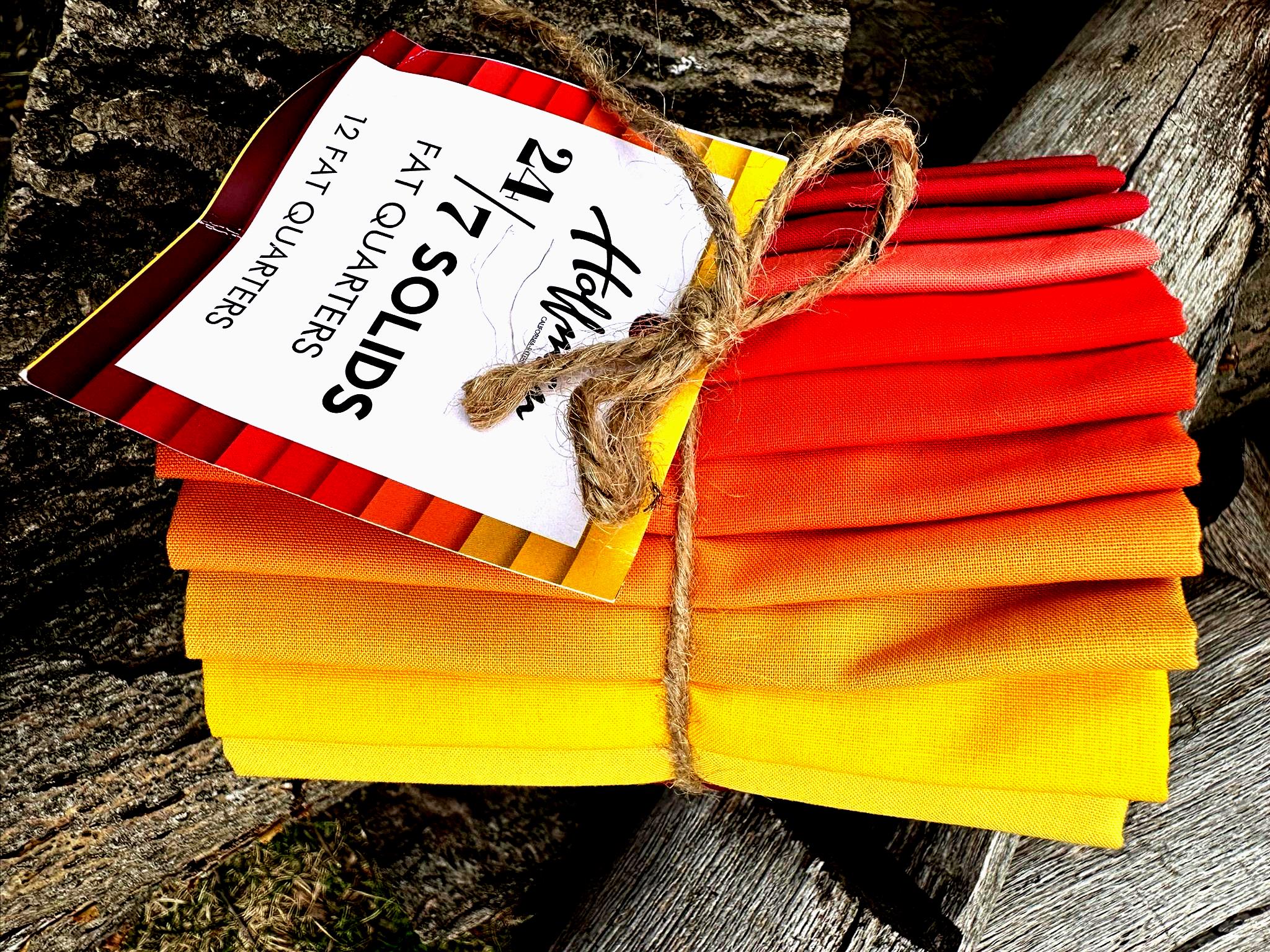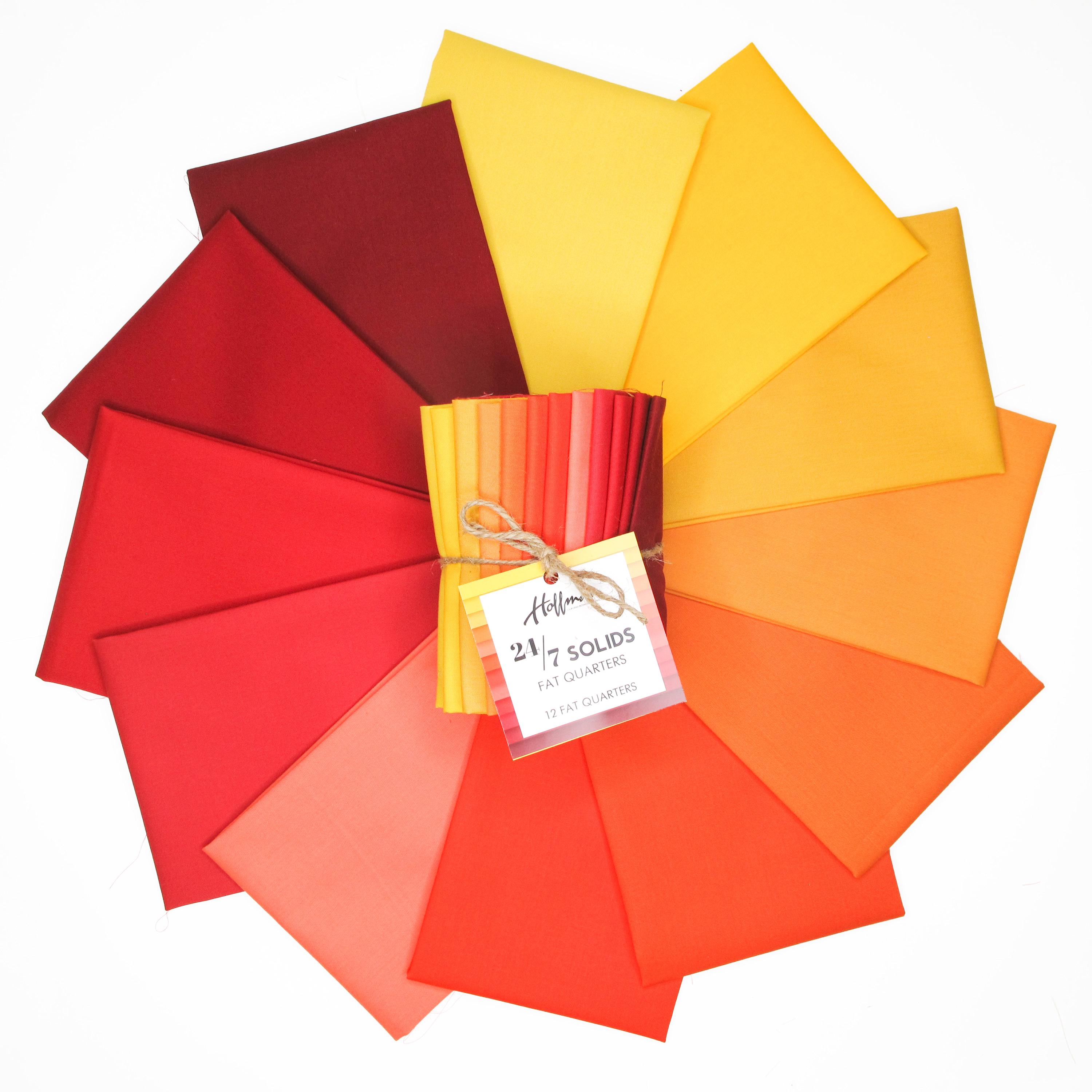 12 Fat Quaters of Orange, Yellow and Reds