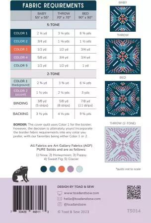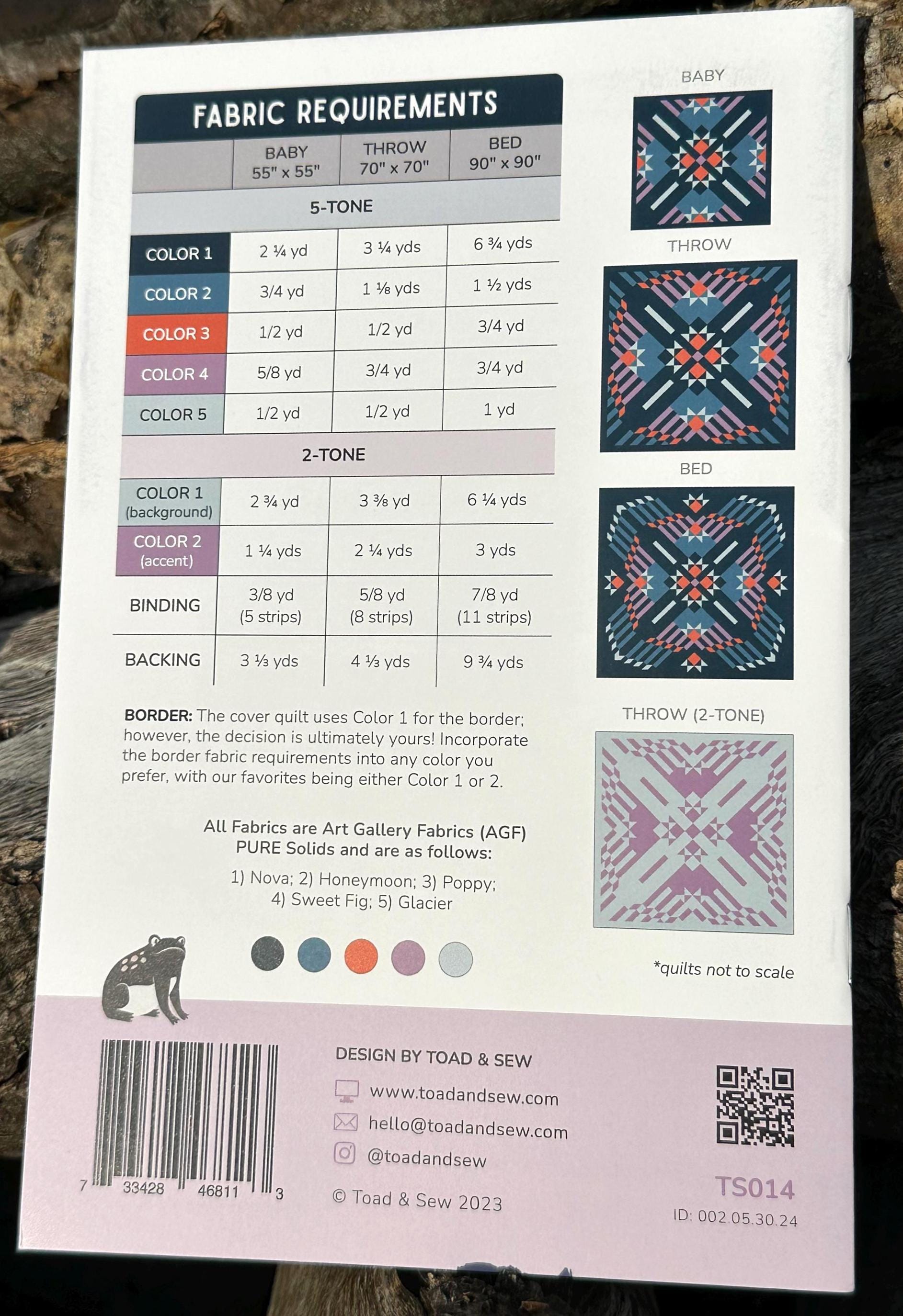 The Nebulous quilt draws inspiration from the vast Southwest night sky, featuring a deep indigo background that creates a burst-like effect. Designed for intermediate quilters, it serves as a skill-building project with tricky techniques incorporated into the pattern. Available in three sizes and two color options—5-tone for a vibrant look or 2-tone for a more subtle style—Nebulous is a versatile and visually striking creation that caters to different preferences and purposes. This pattern offers various layout and size options, allowing you ample choices to personalize it according to your preferences. It is suitable for intermediate quilters due to the importance of sewing precision using both a 1/4" and scant seam allowance.