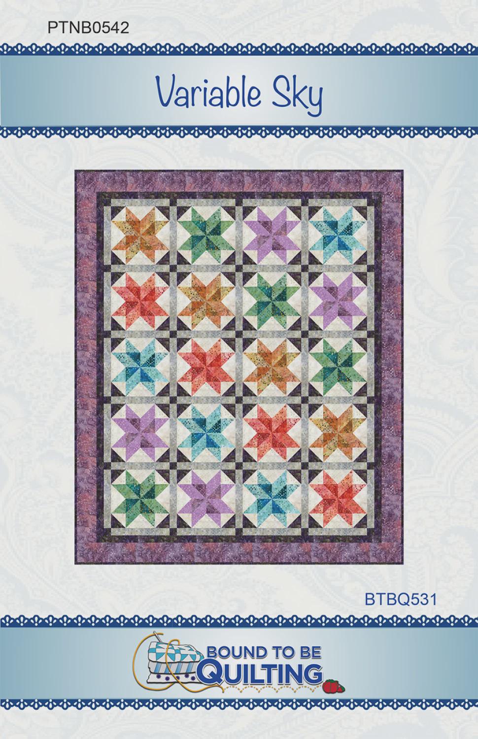 Just one Pinwheel Star block forms the basis of this quilt. However, by using light and dark tones of five different colors, we've created a riot of color that is easy for you to make. Our sample uses the Pop Dots collection by Banyan Batiks. Finished size is 67" x 80", and skill level is confident beginner.