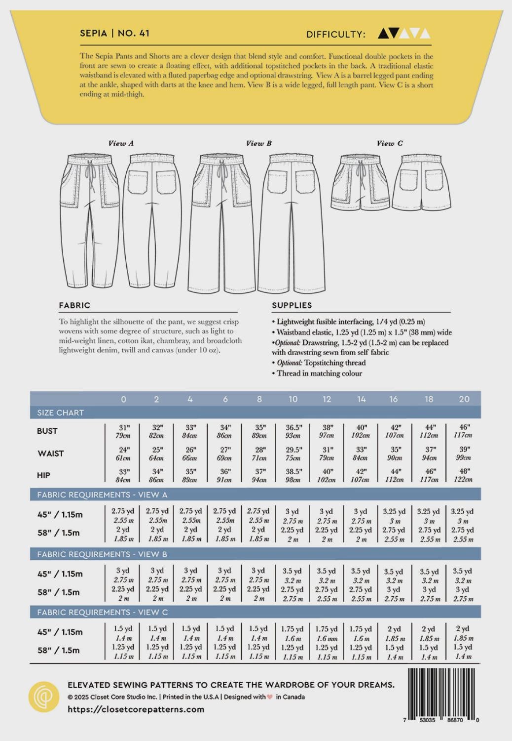 Sepia Pants and Shorts - Paper Sewing Pattern - From Closet Core Patterns - Sizes 0 -20