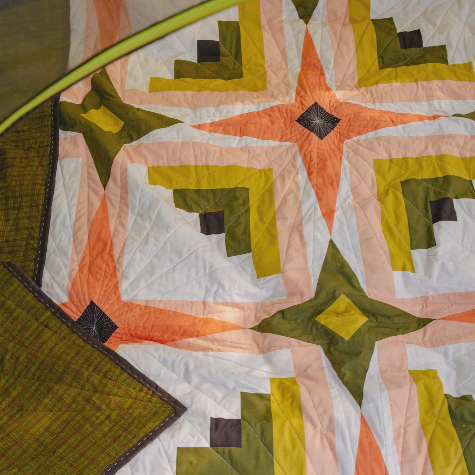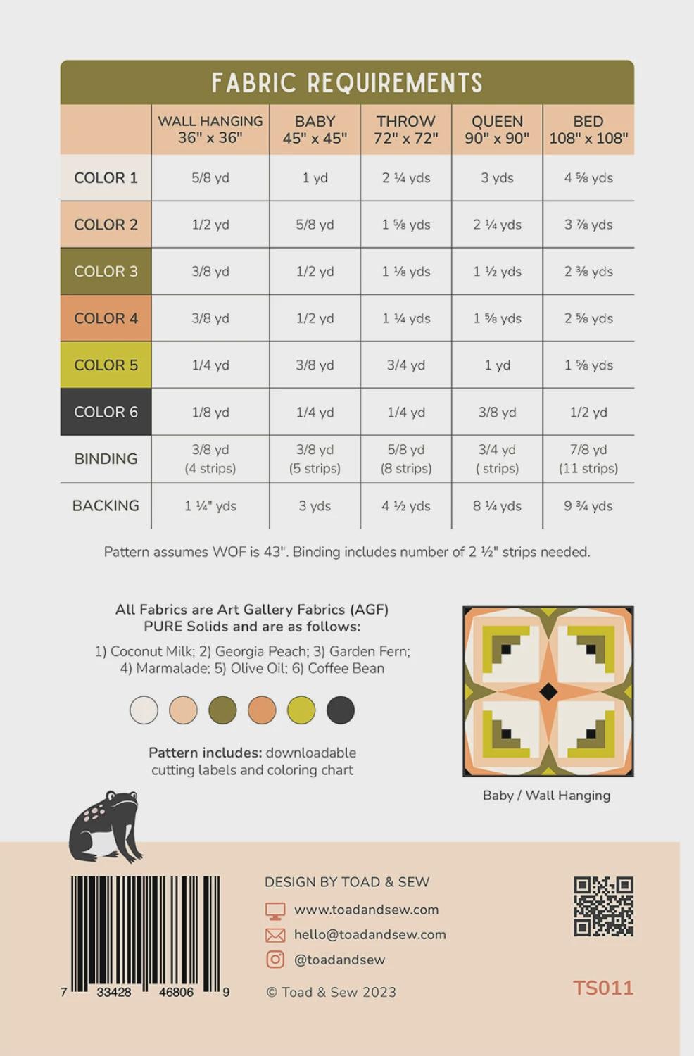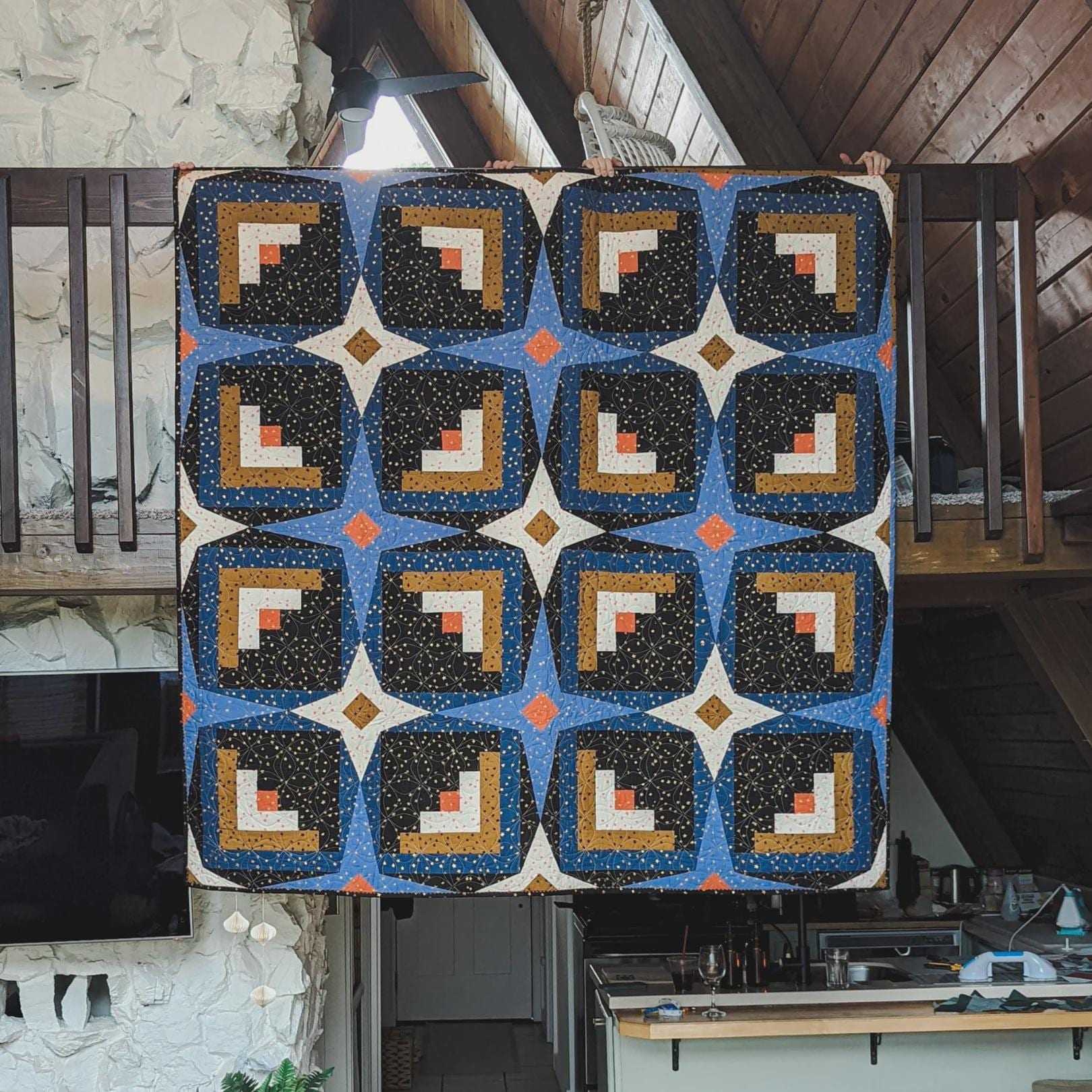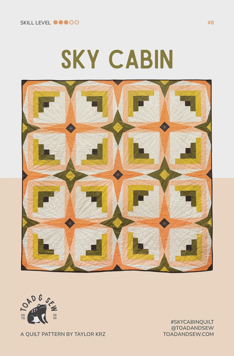 The Sky Cabin Quilt is an original pattern design by Taylor Krz of Toad & Sew. This pattern is rated as advanced-beginner and assumes that the quilter understands basic quilting knowledge and can keep a consistent 1/4" seam allowance. It is a block based pattern that is built off of the traditional log cabin block. The pattern comes with two different size blocks making a lot of different size options! It's also a great pattern to master HRTs, HSTs, and matching points.