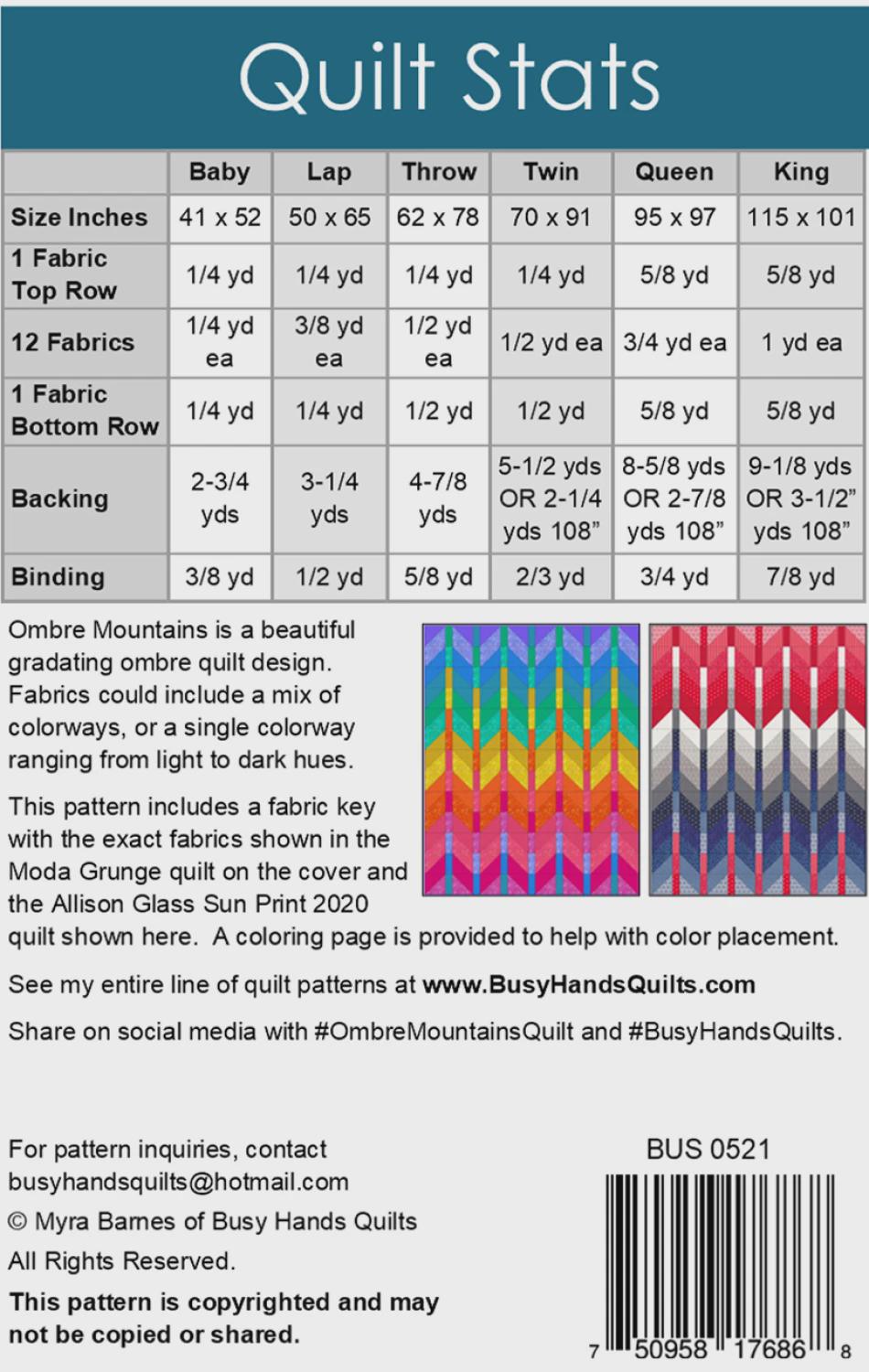 Ombre Mountains- Quilt Pattern -Multible Sizes Included - By Busy Hands Quilts