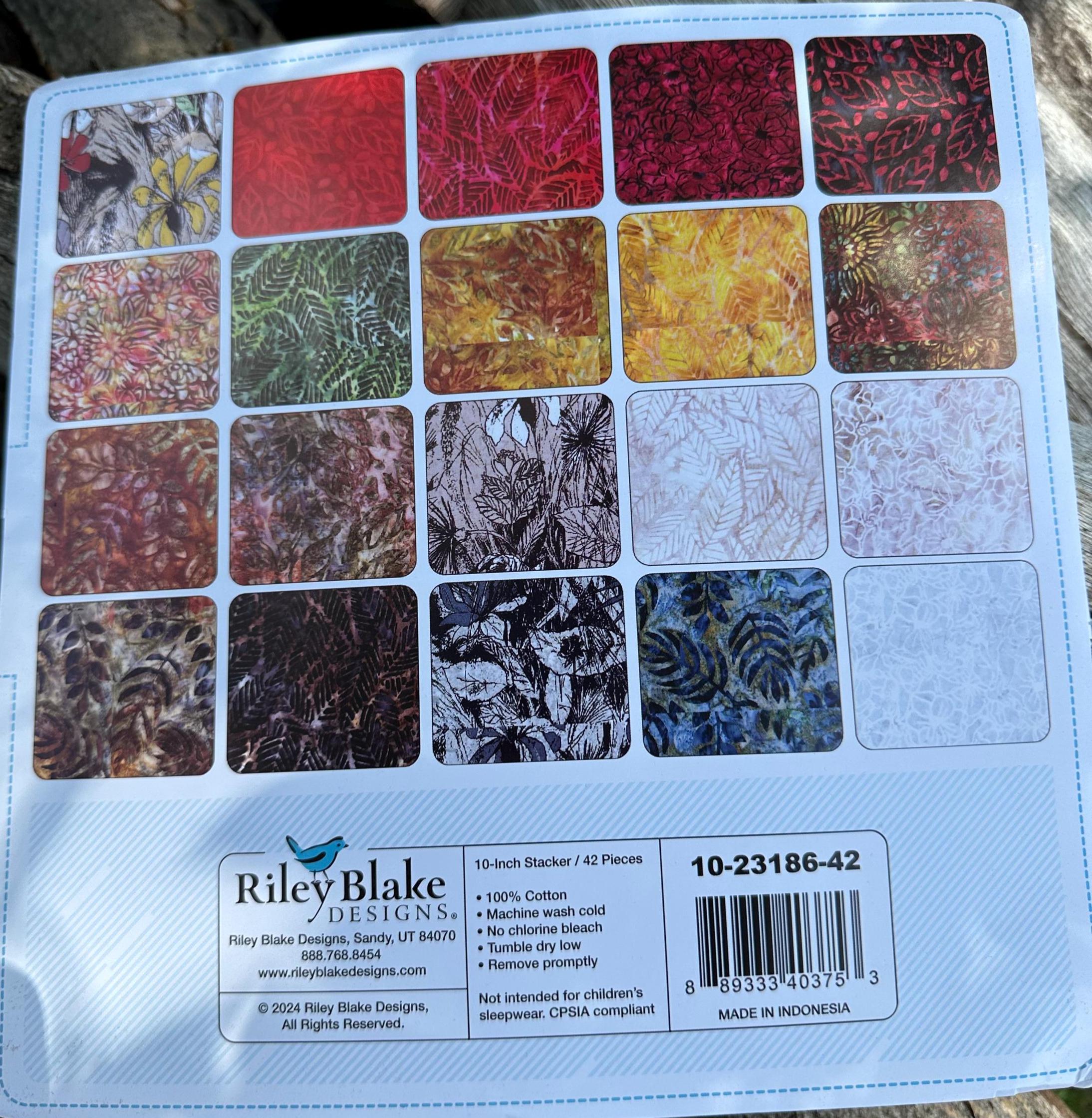 Includes (42) 10" Squares, with duplicates, from the Expressions Batiks fabric collection by Riley Blake Designs.