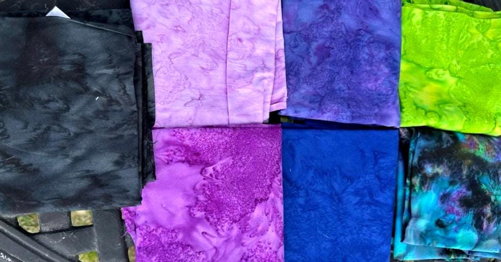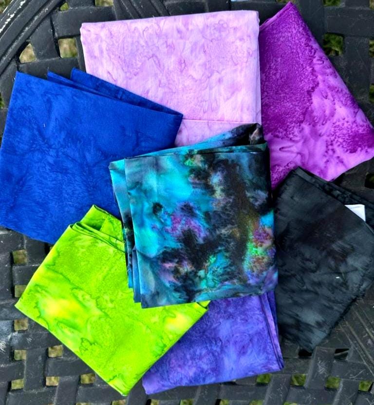 This is a 7 Piece Hoffman, Hand Dyed Batik Fat Quater Bundle