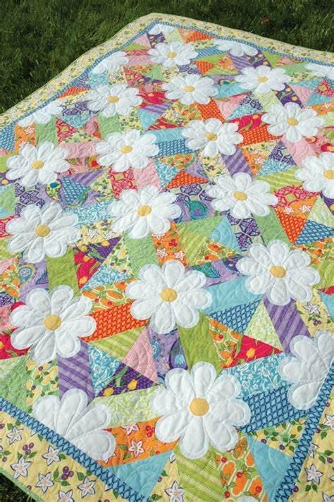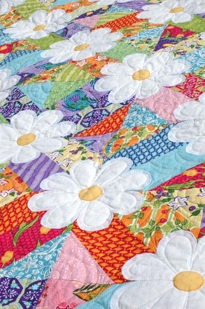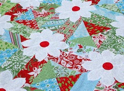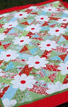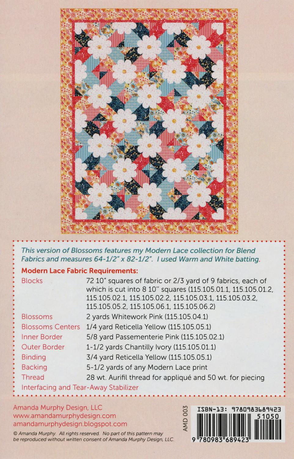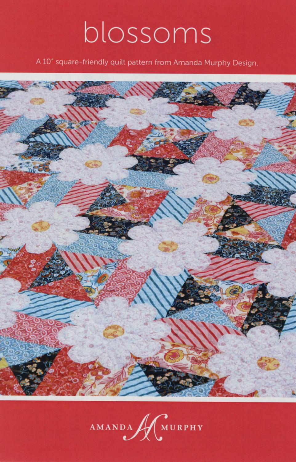 Blossoms is one Amanda's most popular patterns. It uses 2 layer cakes or any 10in squares and measures. If you make the flowers a little pointy it also makes a fun Christmas quilt! Finished size 64-1/2in x 82-1/2in.