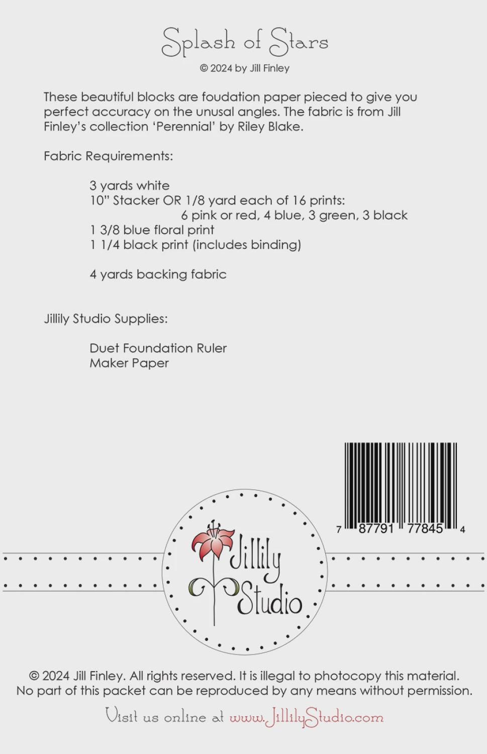 Splash of Stars Quilt Pattern- Finished Size 64" X 64" - By Jillily Studio