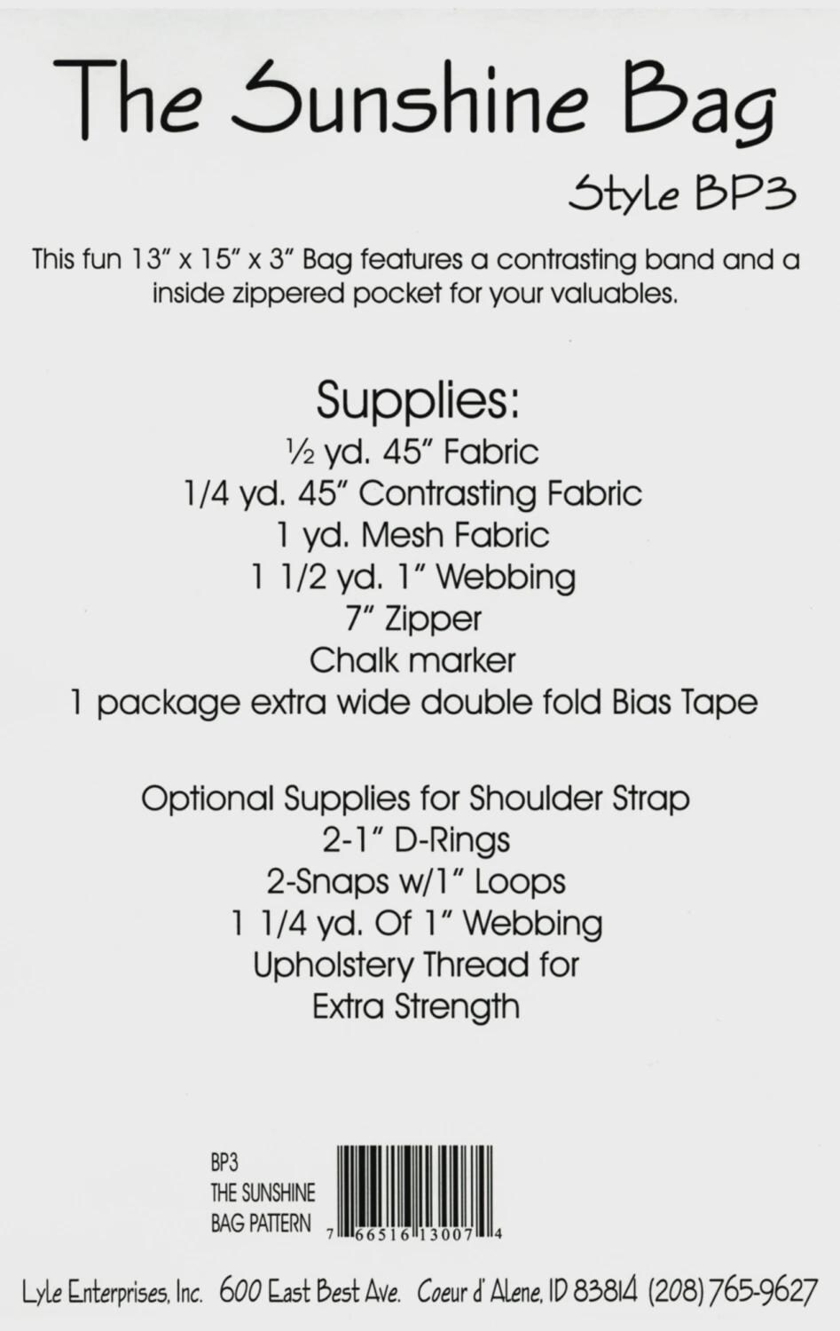"All Patterns Are Brand New From The Designer or Manufacturer! The Sunshine Bag, Vinyl Mesh Tote Bag Sewing Pattern From Lyle Enterprises.