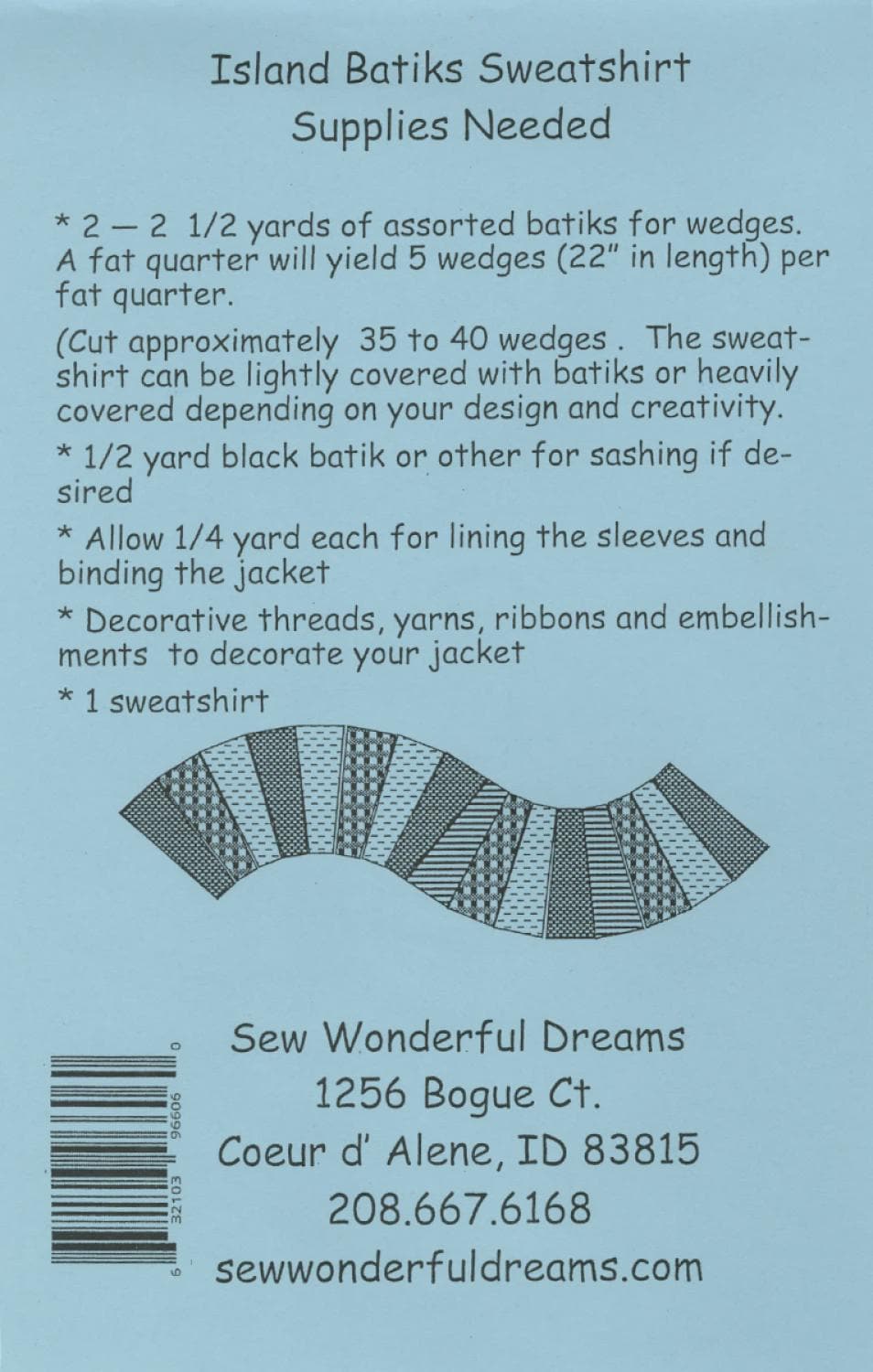 Island Batiks Sweatshirt Jacket - Sewing Pattern - From Sew Wonderful Dreams