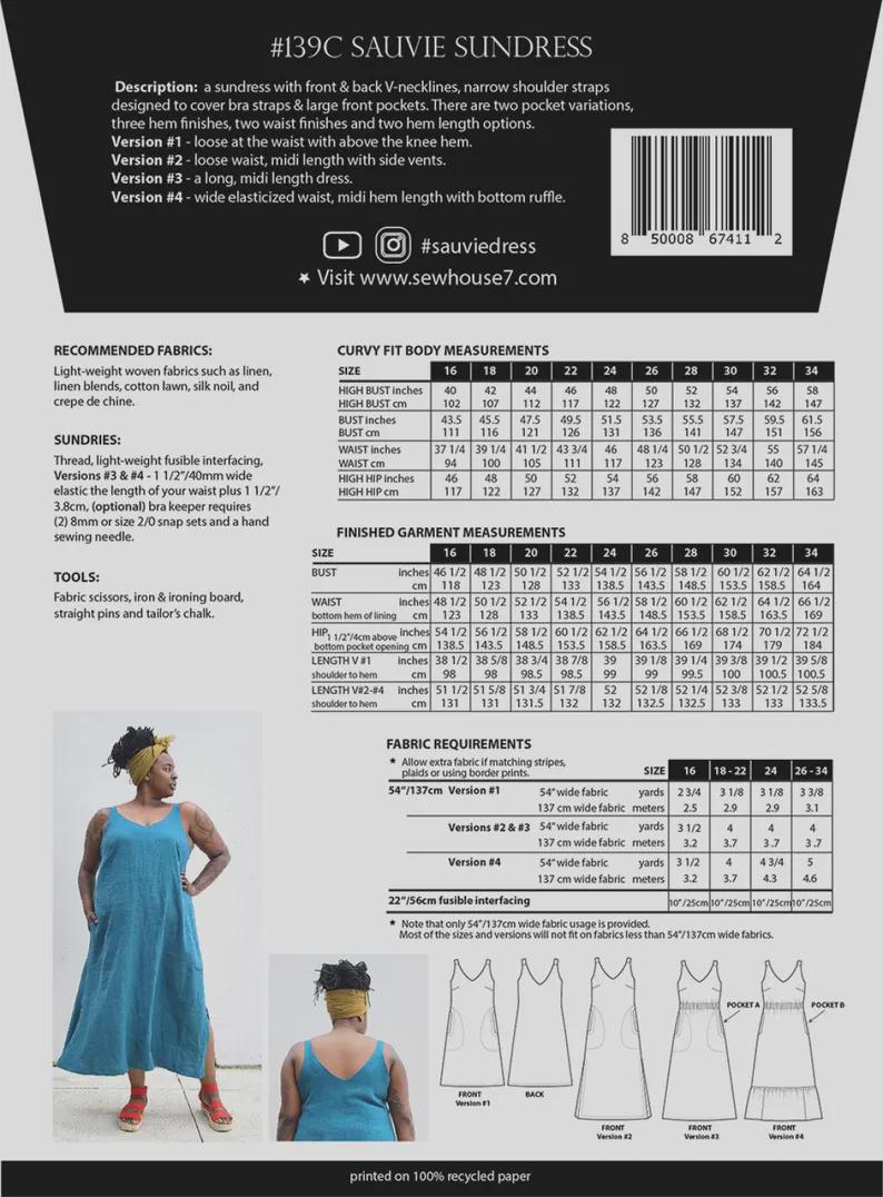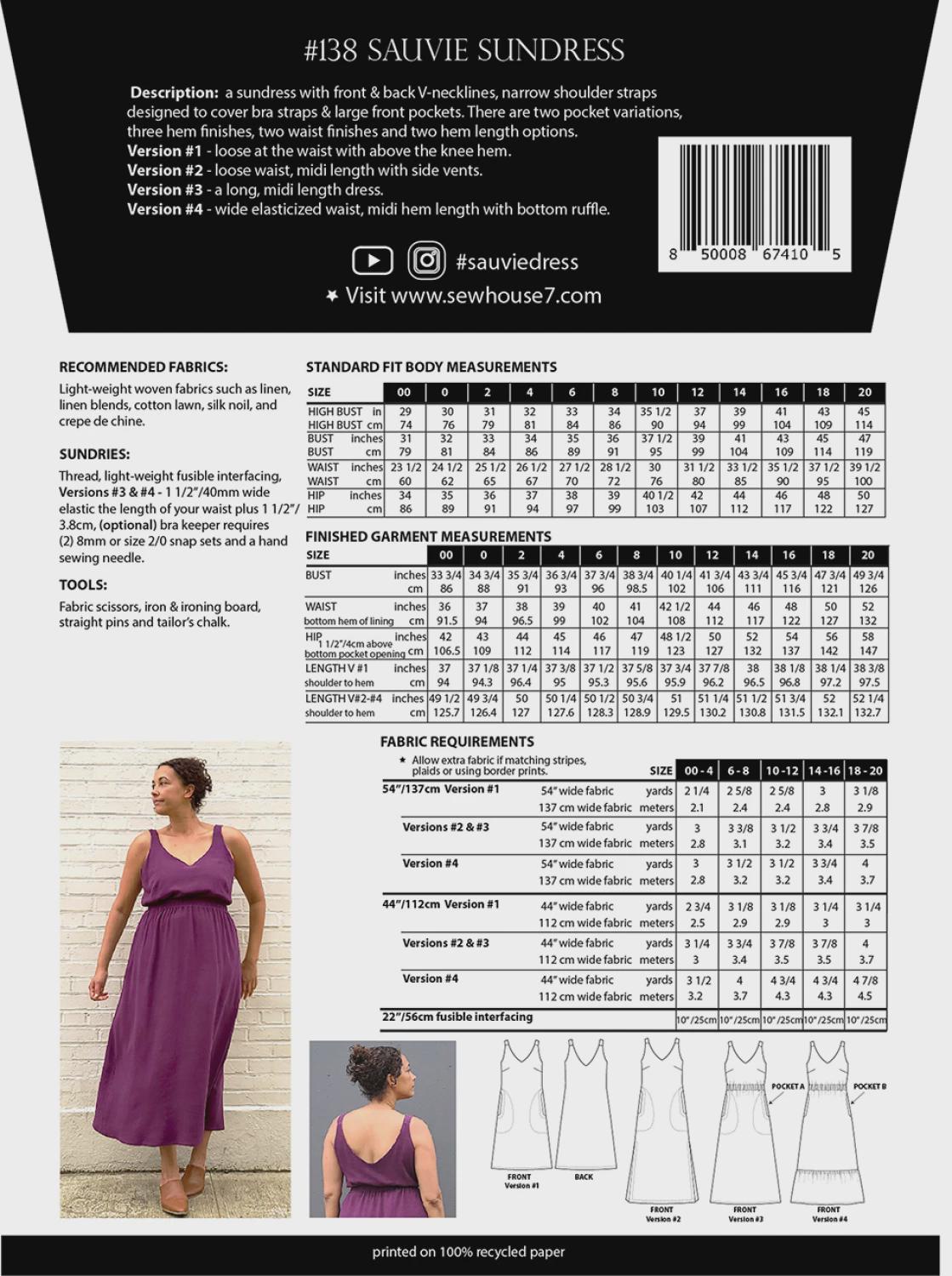 Sauvie can be anything from a swim cover-up to a casual summer dress to an elegant evening gown depending on your fabric choice. Pattern Features: The low front and back V-necklines and narrow straps were designed to cover bra straps and optional bra keeper.
