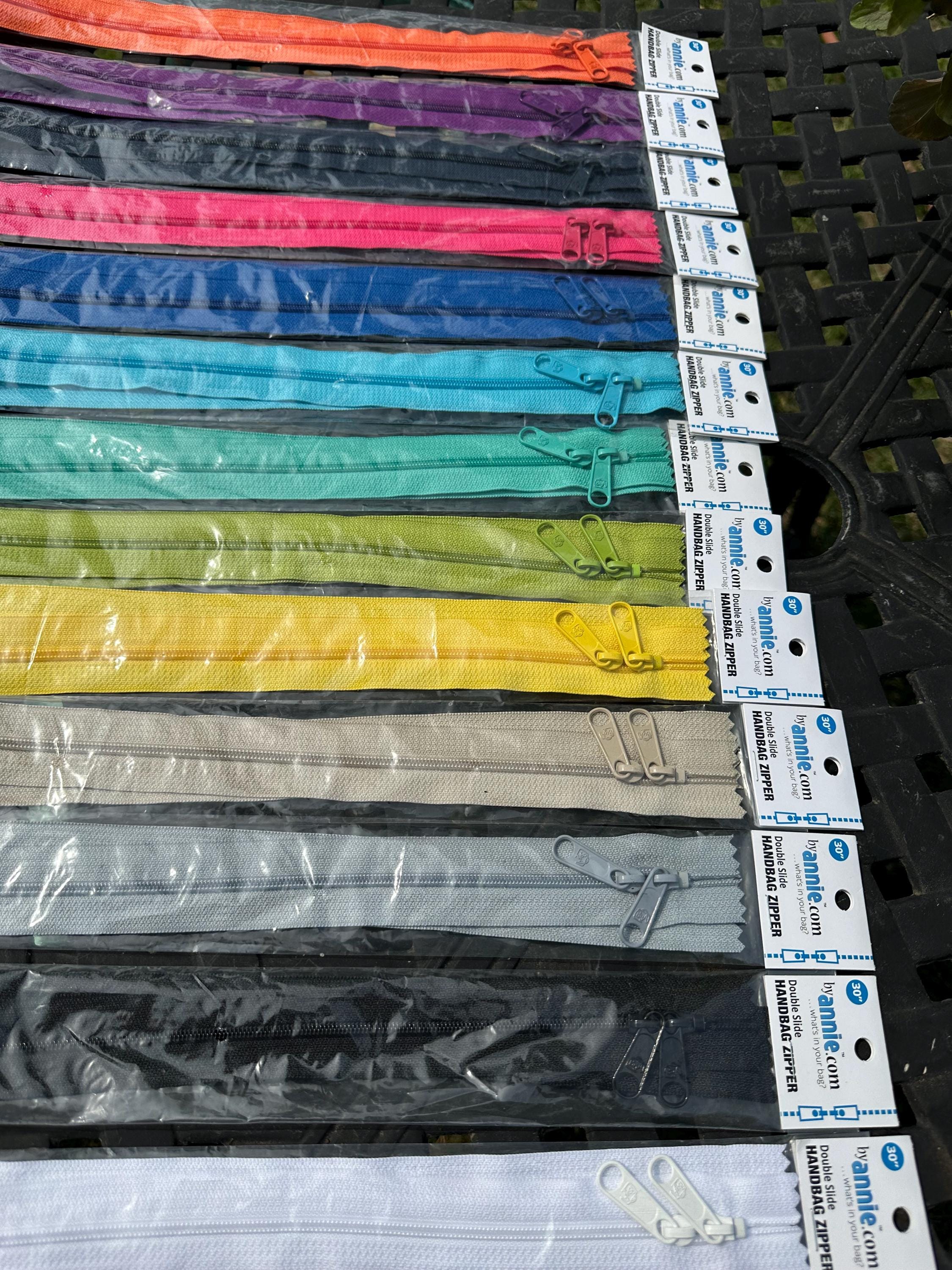 30in Double Slide Handbag Zipper is perfect for purses, totes and bags. The 4.5 nylon coil is strong and durable zip after zip and the wide zipper tape make for easy installation.