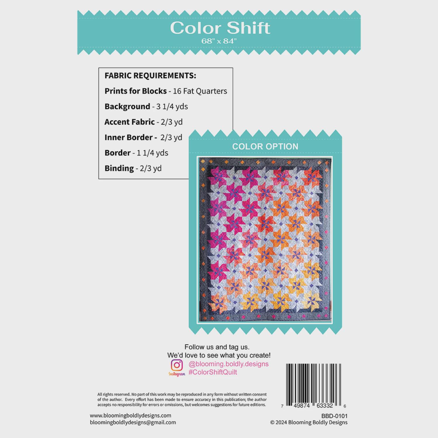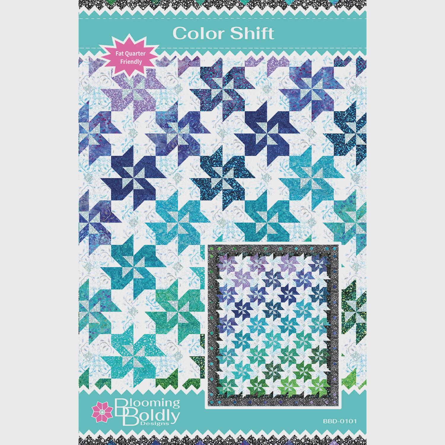 The Color Shift quilt pattern by Leslie Ryan of Blooming Boldly Designs is fat quarter friendly and features pinwheels or windmills with a unique and intricate border.