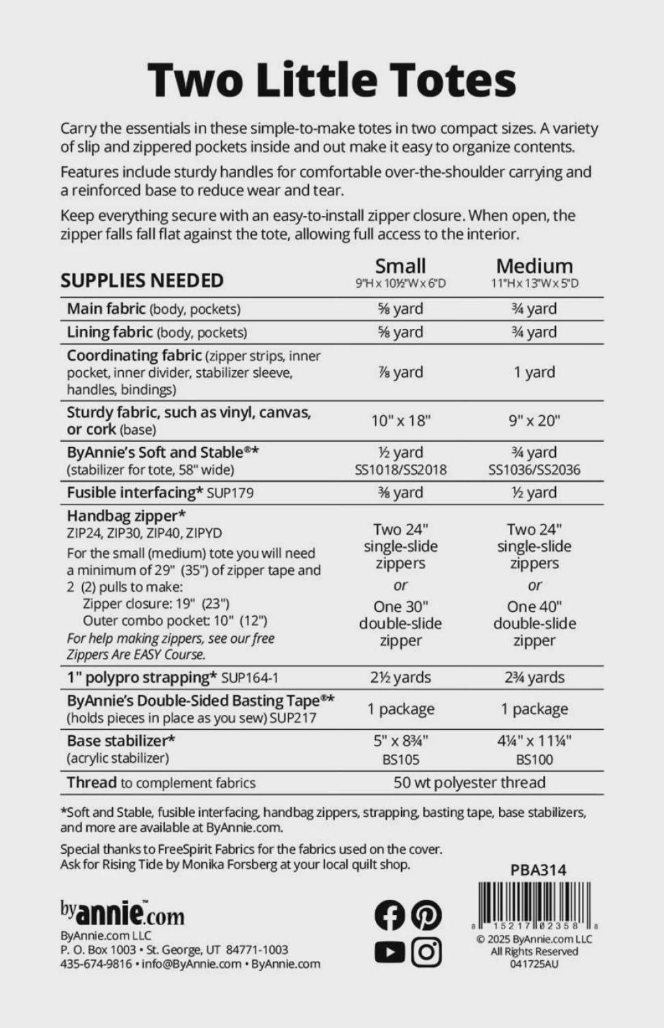 This versatile pattern includes instructions for creating simple-to-make totes in two compact sizes. They're the perfect size for daily use, shopping, carrying a craft project, and more.