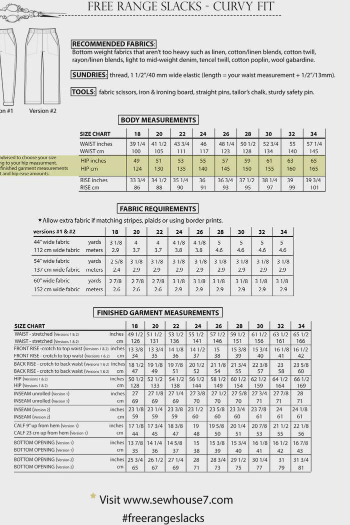 Free Range Slacks Pattern Standard - From Sew House Seven - Standard Size 00 - 20