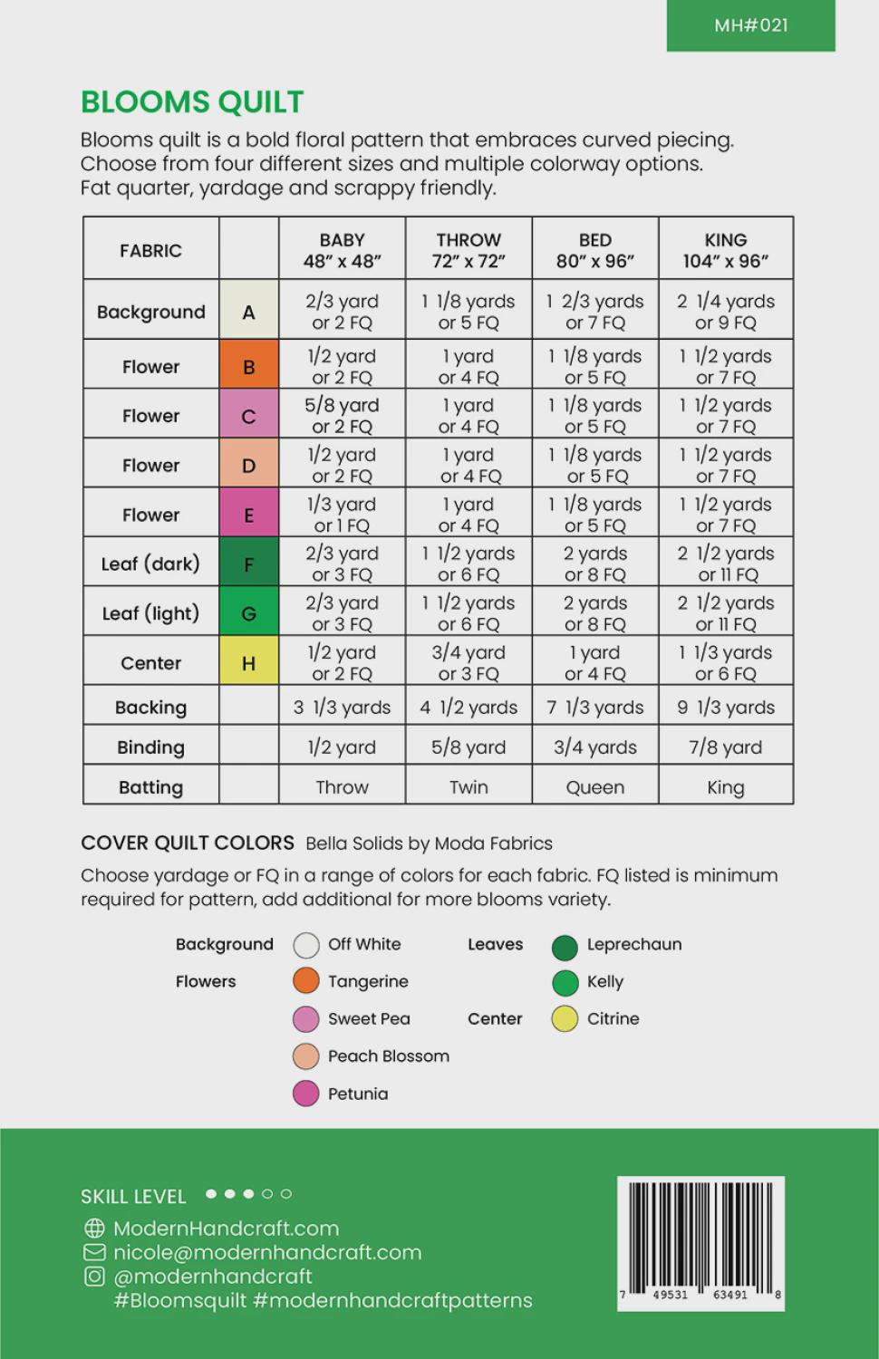 Blooms- A Quilt pattern by Nicole Daksiwcz - For Modern Handcraft - Mulitble Sizes Baby to King