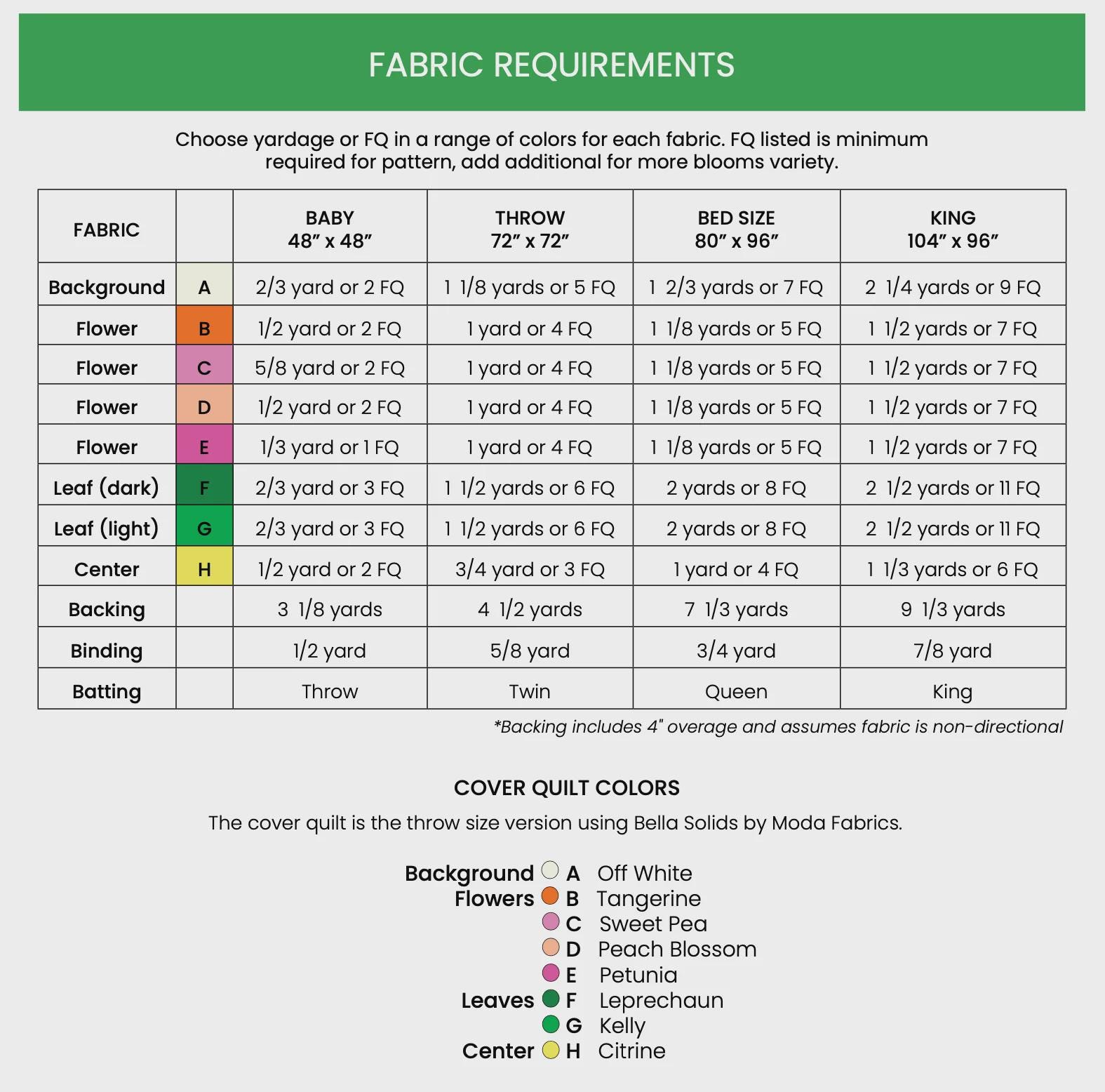 Blooms quilt is a bold floral pattern that embraces curved piecing. Choose from four different sizes: