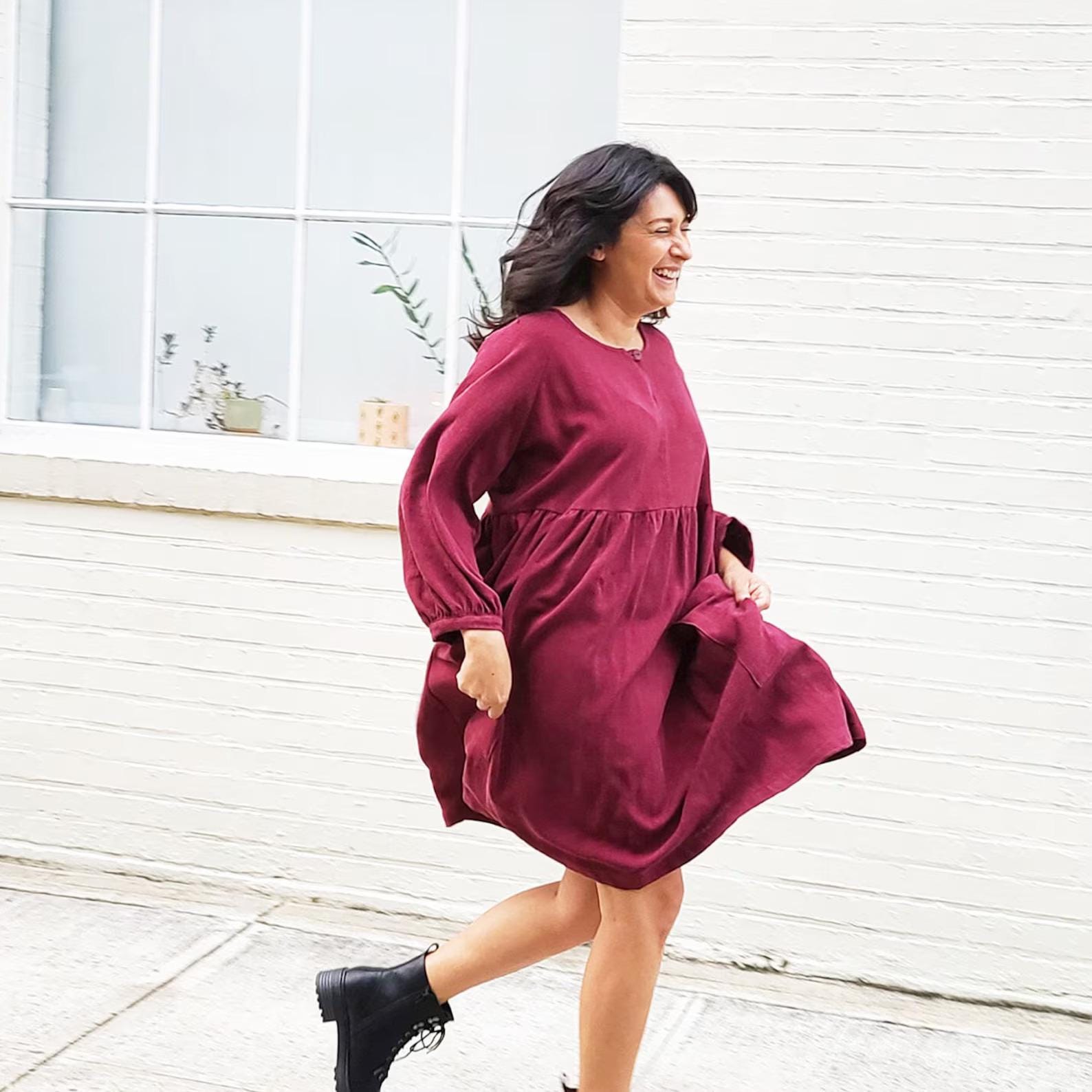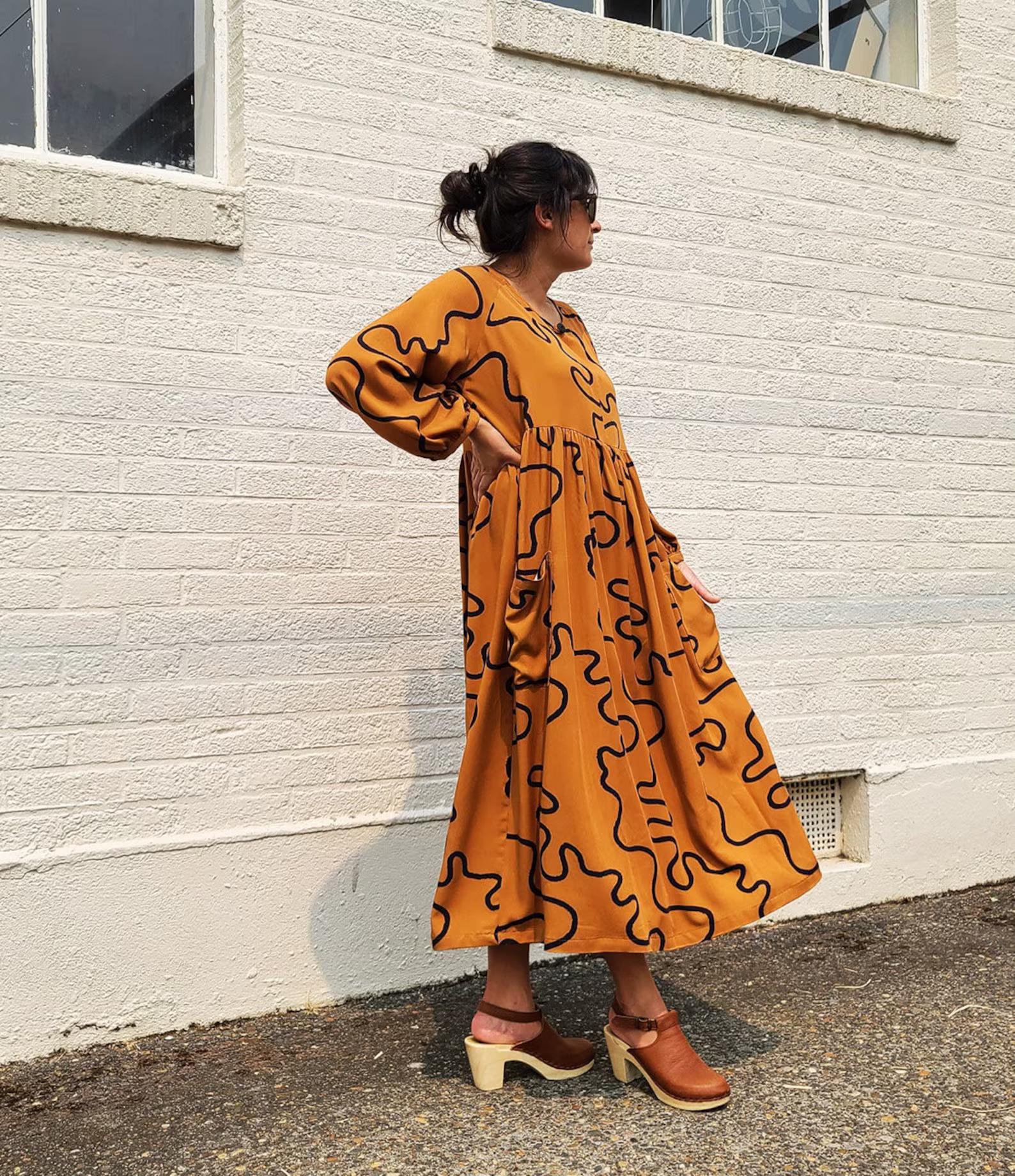 Both dress versions include patch pockets because our customers love pockets. With its flowy and oversized fit, we would classify the Romey Gathered Dress and Top as secret pajamas that can be worn casually with sneakers, sandals or boots. Sew one up in a slinkier fabric for a more polished look!