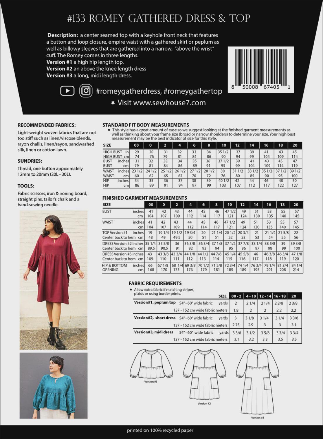 Romey Gathered Dress & Top- Sewing Pattern - Sizes 00-20 - From Sew House Seven- Confident Beginner